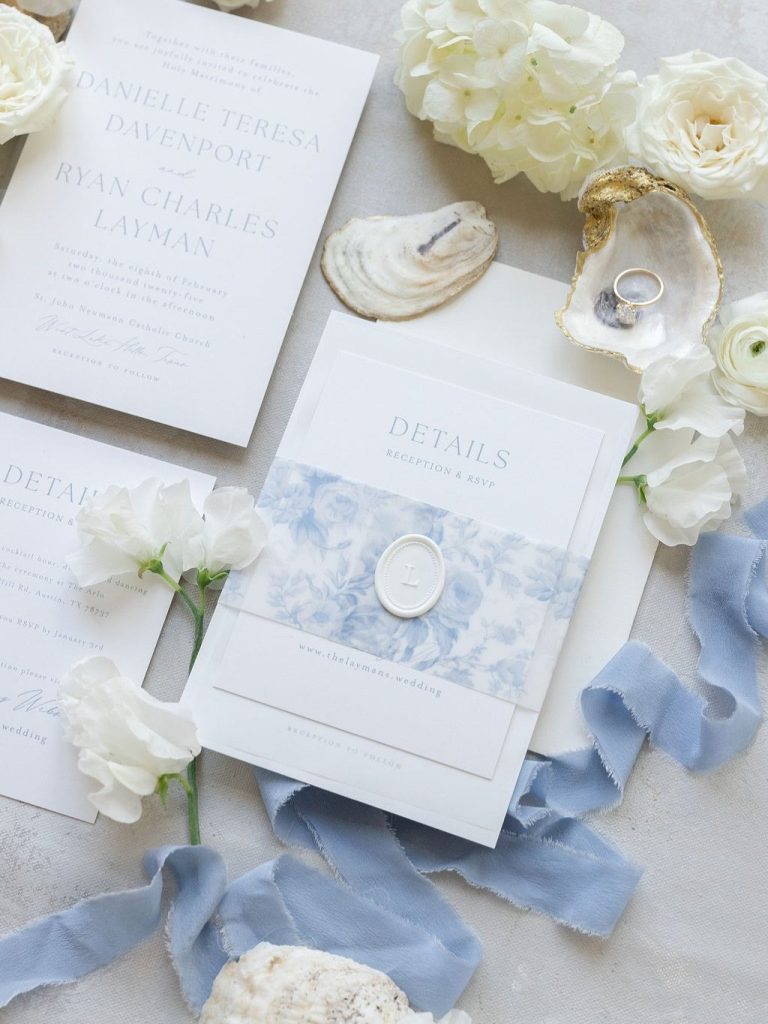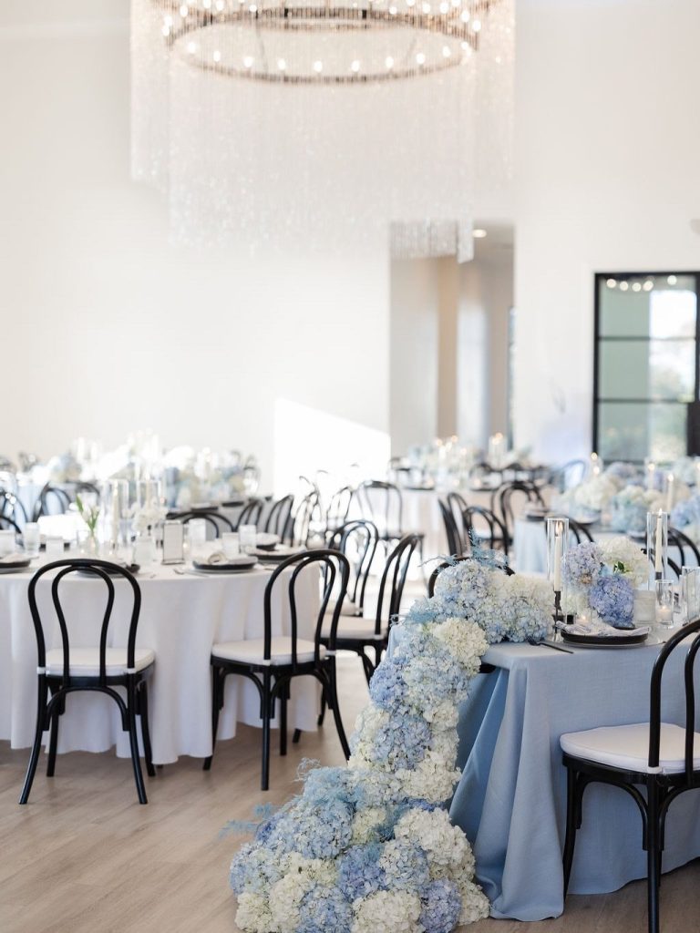 The Bouquets of Austin TX, filled the Layman’s wedding with the dreamiest blue and white hydrangeas, turning the reception into a truly awe-worthy space ✨