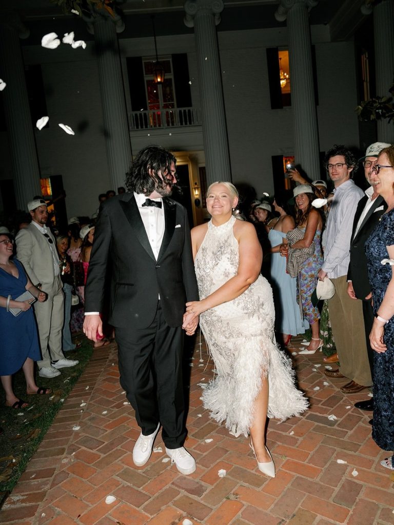 We’re obsessed with The Peaces and their wedding day filled with gorgeous green hues, swans, and funky details. From the cake to the signage, every moment had personality and style. 🦢🍐