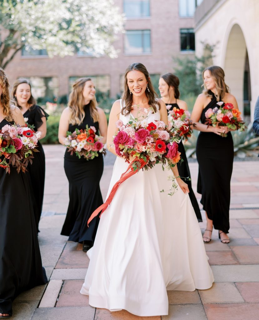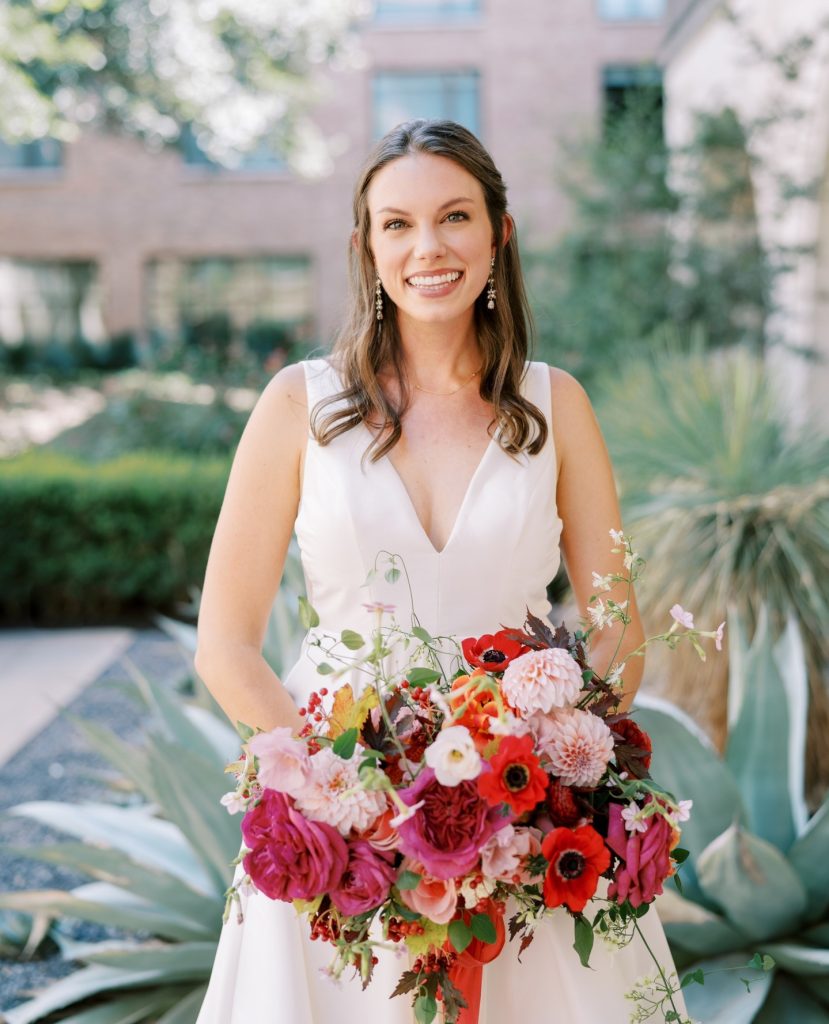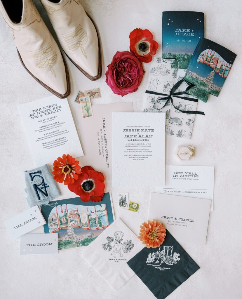 “It was extra special to see friends after going almost two full years without being together. Jake and I are very lucky to have a huge support system! After a sparkler exit and a quick pedicab ride, we ended the night by jumping into the Littlefield Fountain in front of the UT Tower with our wedding party!” – Jessie + Jake