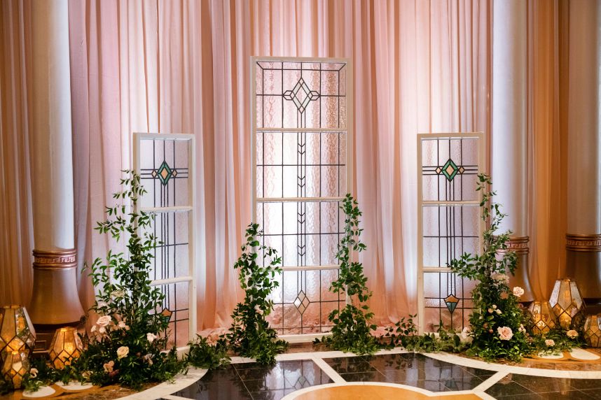From the bride: “I knew I wanted stained glass at the ceremony to feel like an old-world church and that seemed to be an impossible item to come by. In talking with Flora Fetish, they found some stained glass and I got to personally hand pick out which ones I wanted.”