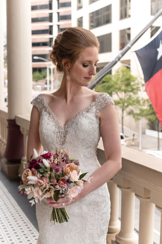 We are so obsessed with the stained glass elements in this classic, timeless wedding! Having a wedding at The Driskill is nearly a one-stop-shop! Covering everything from the accommodations to the cake, to the rehearsal dinner to the venue, The Driskill is truly unrivaled when it comes to grand, unforgettable receptions. All of the most elegant decor and rentals from Flora Fetish are the cherry on top of this lovely soiree, and pastel petaled centerpieces designed by the them, as well, are the perfect way to build femininity and romance in a wedding scene. We are obsessed with Kristin’s beautiful bouquet that plays with hints of whimsy! Planning and preparing for a wedding as beautiful and grand as this one was surely stressful, but we loved hearing that the couple got wedding-ready with massages from Live Love Relax. Read on to hear the bride’s story behind the stained glass! Cheers to Kristin and Russell!