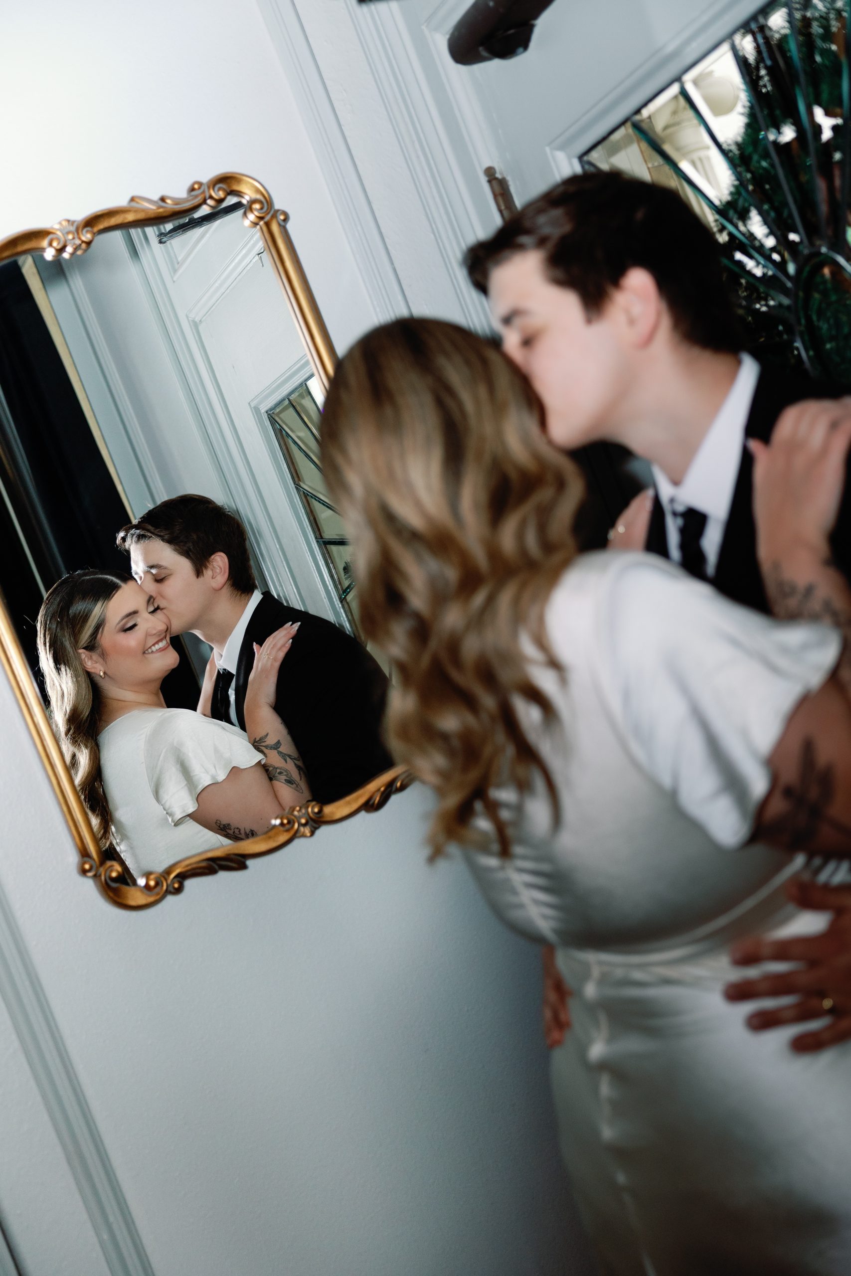 “How We Met — October 2023, we matched on two dating apps within the same week, yet neither of us were actively going on dates… I think we both had a feeling that we needed to put ourselves out there one last time and re-download the apps. Since two different dating algorithms had recommended that we were compatible, I thought “why not, we should meet up”. I didn’t know what to expect, but apparently Elliott had told his inner circle about me before we even met! Even though we met online, I truly believe there was something bigger pushing us together. We were having one more normal conversation on one app, talking about hobbies, then on the other app (Bumble, where the girl messages first) I started the convo with the cringiest prompt and we were just joking on that one. Acting like an old married couple, literally.