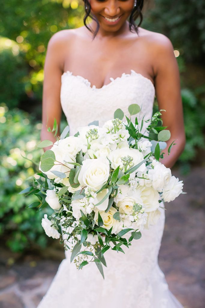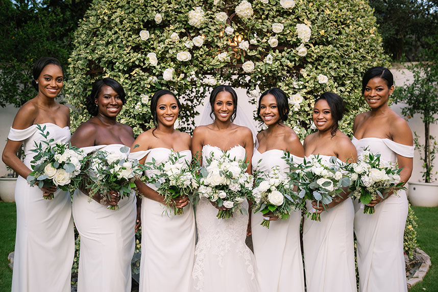 Mia Love and Raymond Ledkins’ traditional Austin wedding is absolutely overflowing with elegance! From the whimsical garden ceremony to the candlelit tented reception, every detail of this wedding is to-die-for. If you’re a bride-to-be that loves all things traditional and classy, then this wedding is sure to inspire you. The bride and her six bridesmaids all carried lush ivory bouquets with elegant greenery accents, while the groom and his groomsmen had classic ivory boutonnieres. Mia looked stunning in her strapless mermaid wedding dress from Blush Bridal Lounge, and she had her gorgeous bridesmaids by her side in off-the-shoulder champagne gowns. From start to finish – no detail missed – the entire day was captured flawlessly by The Bird and The Bear Photography & Films – take a peek below! Cheers to Mr. and Mrs. Ledkins!