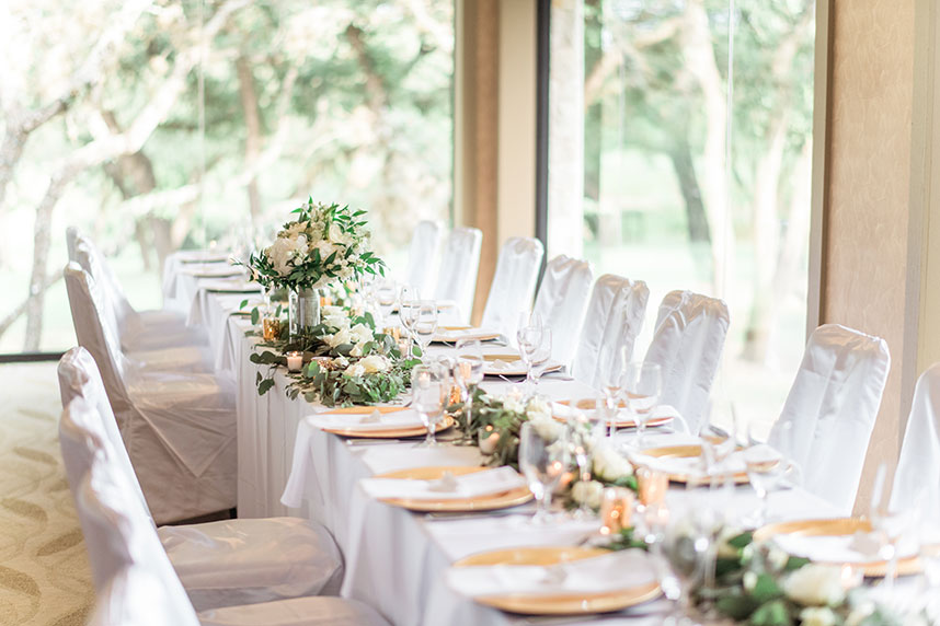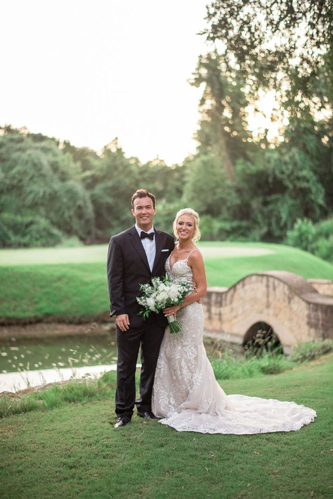 This traditional country club wedding is a summertime dream for all of you classic brides out there! The Hills of Lakeway Country Club provided the perfect location for all the weekend festivities of Breanna Blecha and Austin Essenburg’s elegant celebration. April Mae Creative captured all of the lovely details, and we are totally loving getting to take a peek into the happy couple’s big day. Breanna was a show-stopper in her lace bridal gown, and we’re loving the pop of color her bridesmaids’ traditional light-blue gowns provided. This wedding is definitely a must-see for some traditional wedding inspo! Check out all the pretty light-blue, gold and white details below. Cheers to Dr. and Mrs. Essenburg!