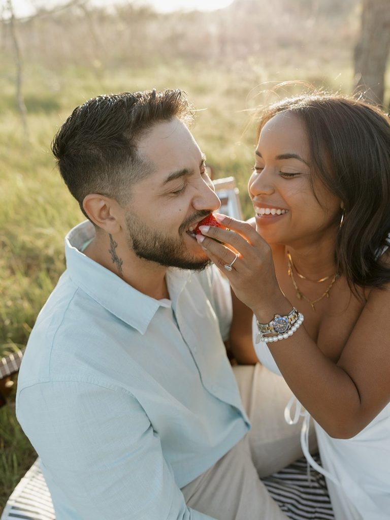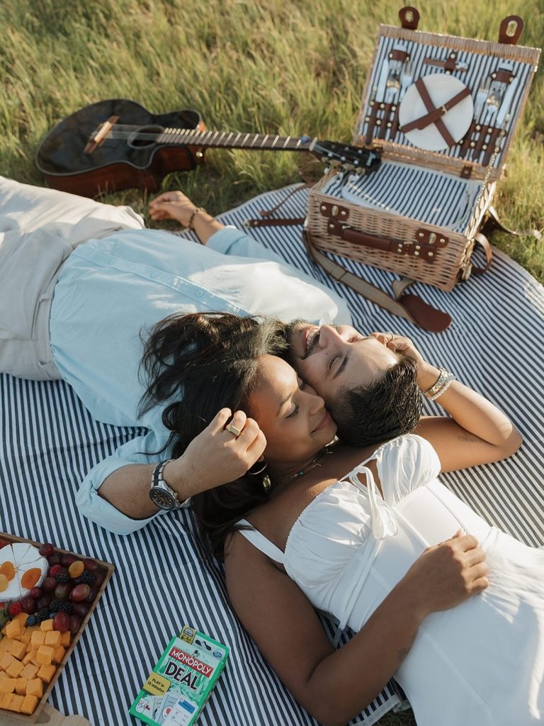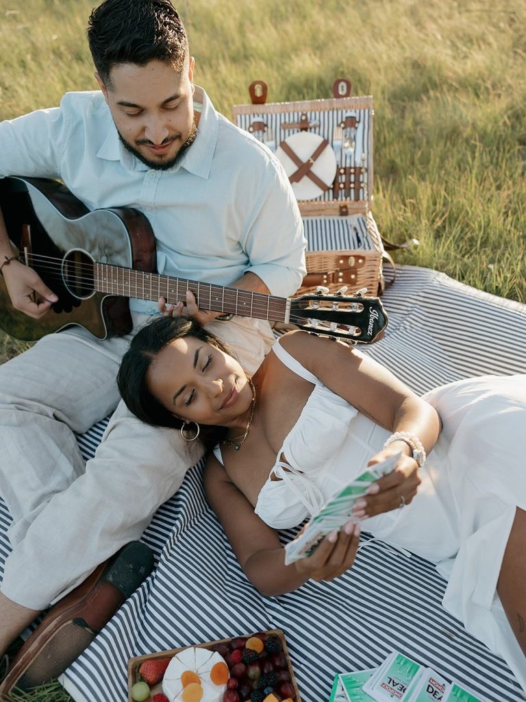 We love when couples make their engagement sessions uniquely theirs! These two pulled out a picnic blanket and a guitar!