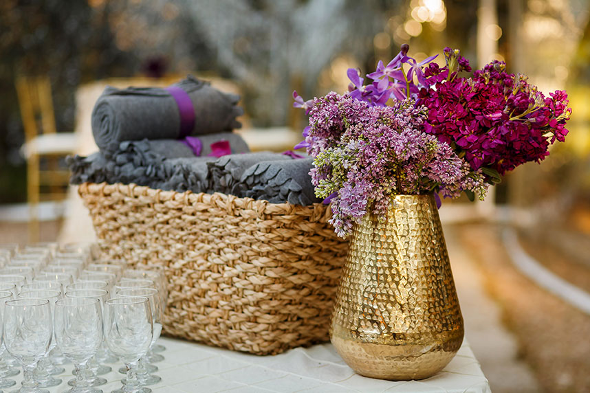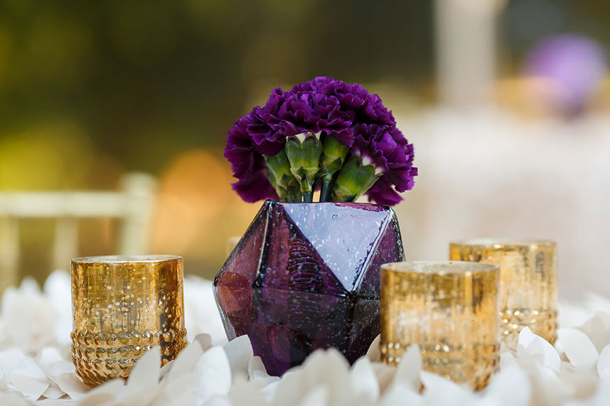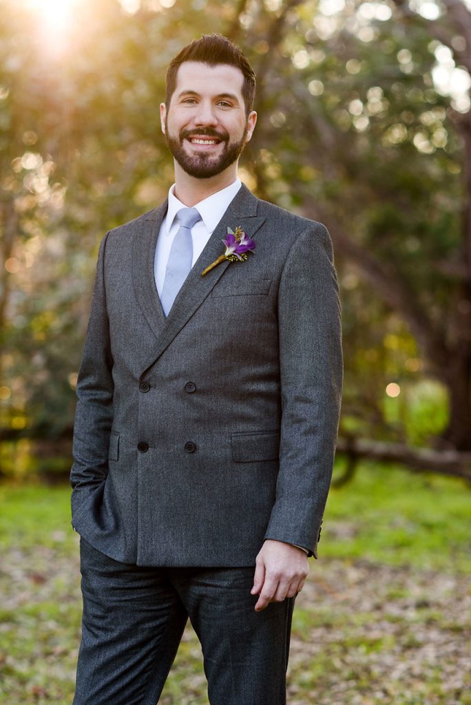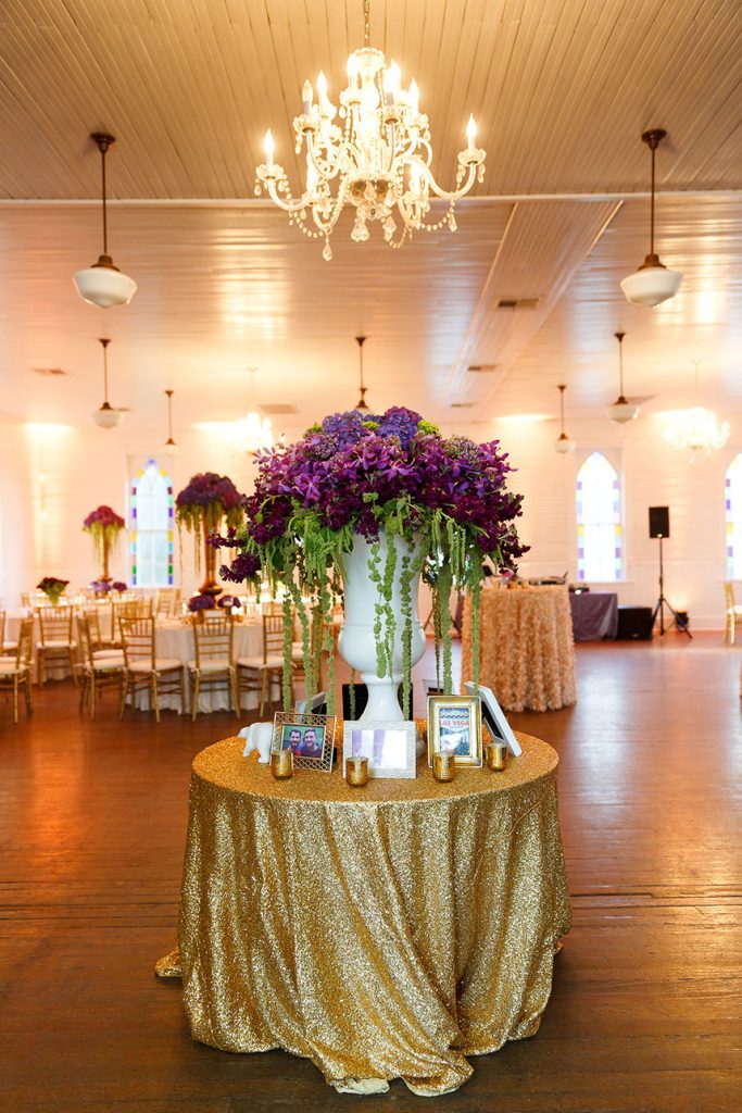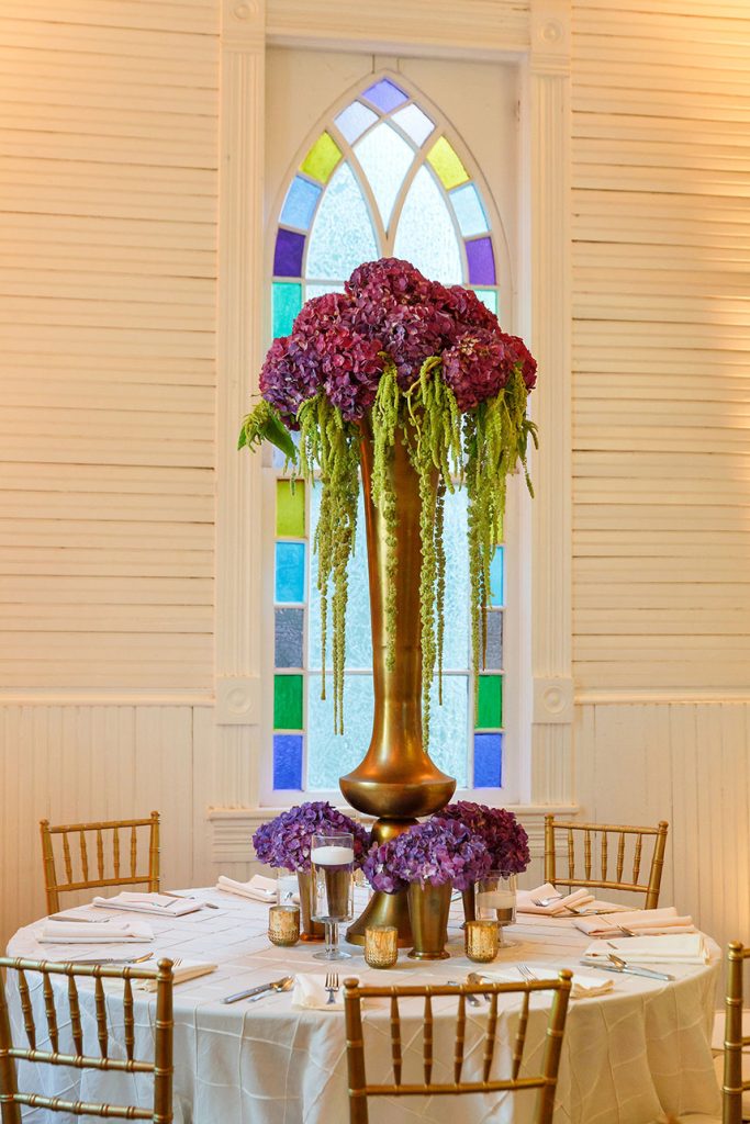 BEAUTIFUL BLOOMS: Westbank Flower Market created a stunning altar backdrop featuring an ombre pattern of purple blooms in a loose design. Tyler surprised Cody with the purple hues — Cody’s favorite color — seen throughout the wedding!