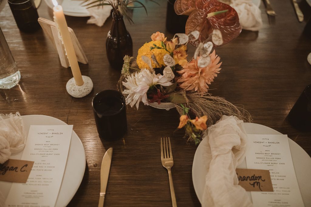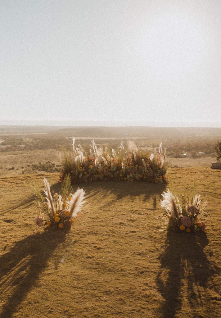 Tropical blooms, native plants, and grasses add the perfect touch to this modern hill country wedding. The wedding was a beautiful combination of modern + bohemian.