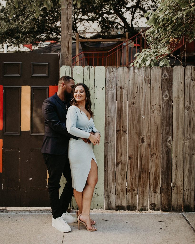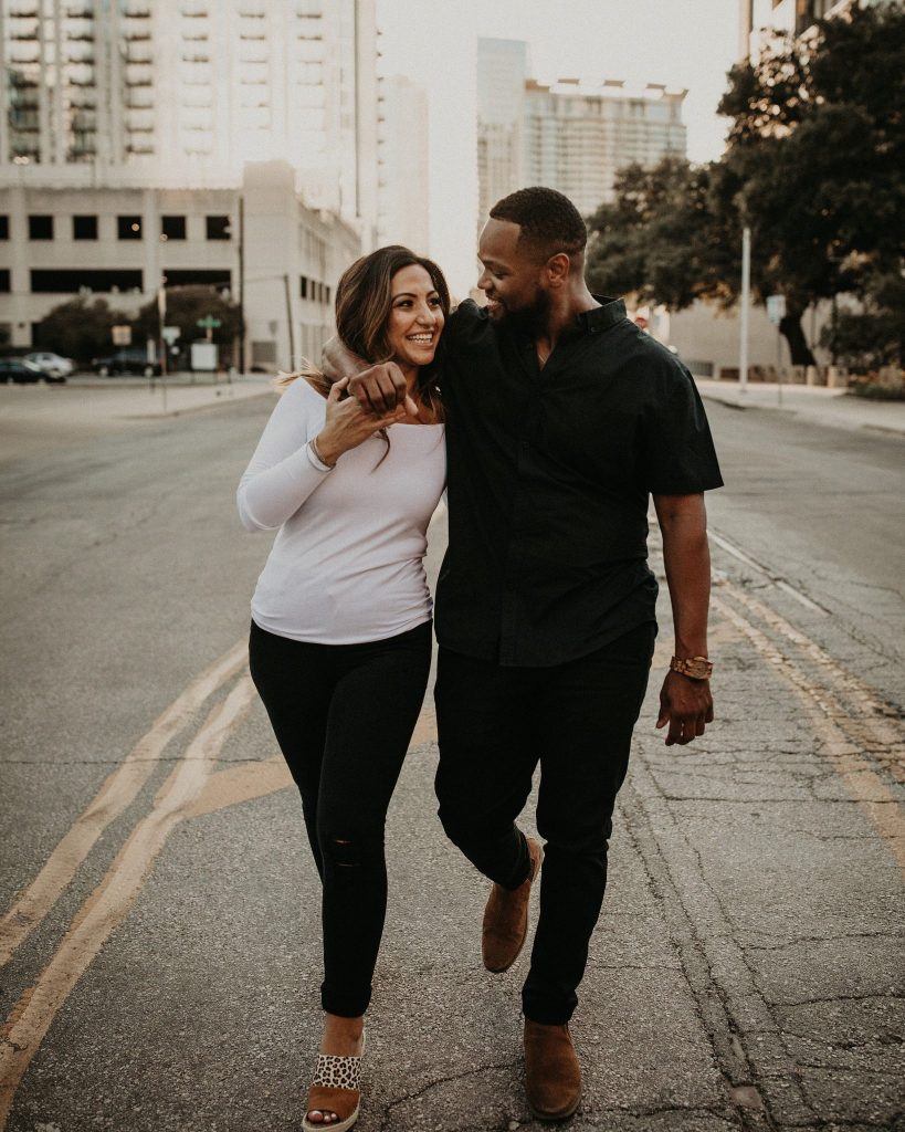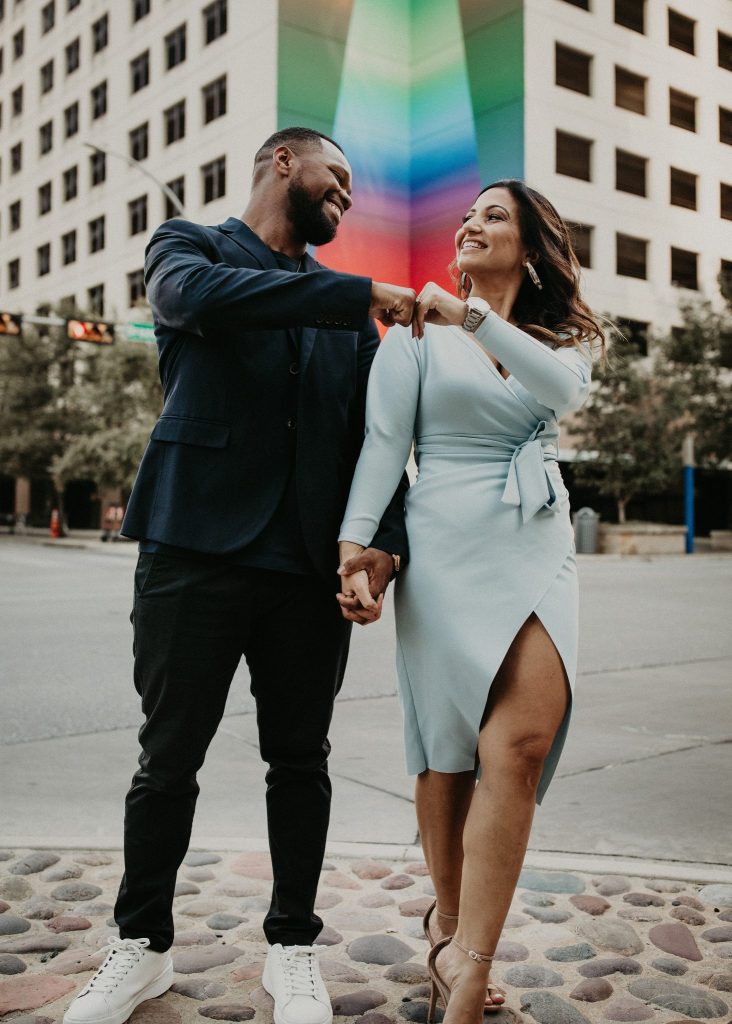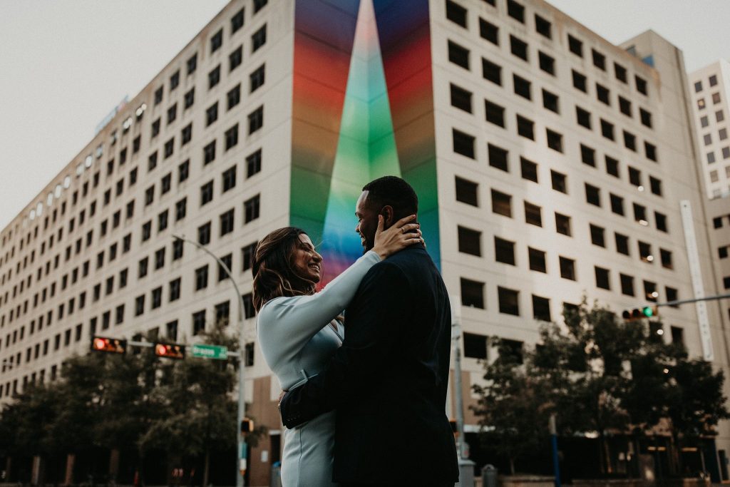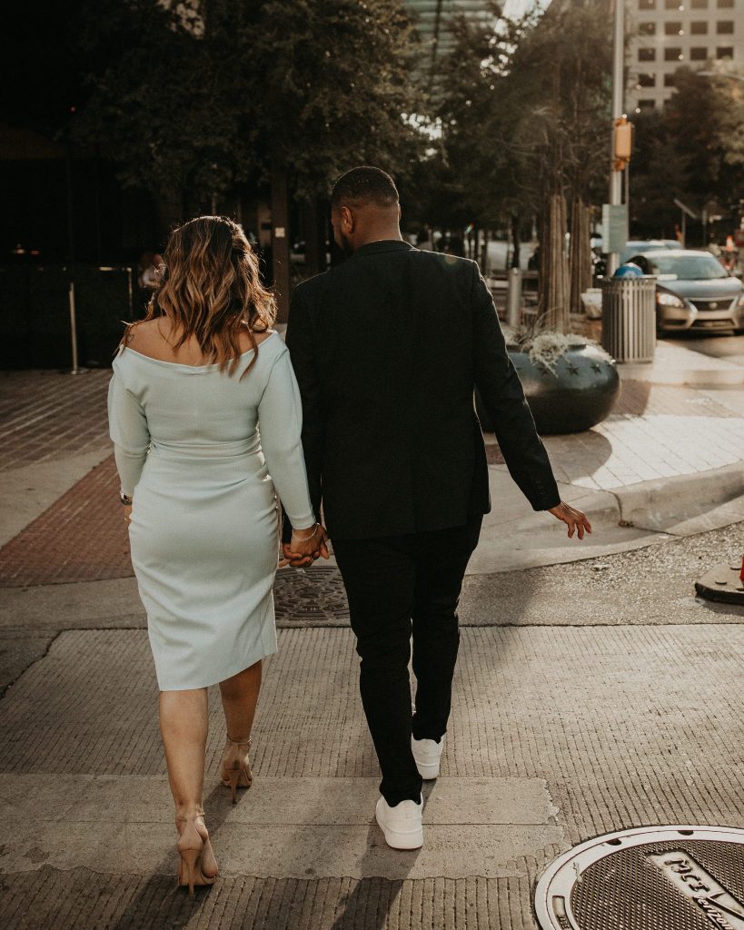 Sepeideh and Mario’s urban outdoor engagement shoot is full of joyful energy and their playful personalities. The couple who had never had professional photos taken were a bit nervous. However, Nikk Nguyen Photo made the process easy and comfortable for the couple, allowing them to be themselves. Sure enough, their personalities took over, and Sepeideh and Mario’s urban outdoor engagement shoot completely stole our hearts. Dancing down the streets of Austin while making each other laugh created photos that we know Sepeideh and Mario will cherish forever. Nikk Nguyen Photo chose an outdoor urban setting so the couple could forget their nerves and just enjoy the city of Austin. “Walking down the street, sitting in the park, and exploring the city – sometimes the simplest things create the most memorable moments,” and we couldn’t agree more with Nikk Nguyen Photo. Keeping things simple and having fun with the one you love always makes for the perfect photo. We can’t help but smile as we scroll through Sepeideh and Mario’s urban outdoor engagement shoot. The couple’s smiles are absolutely contagious, so keep scrolling to see more.