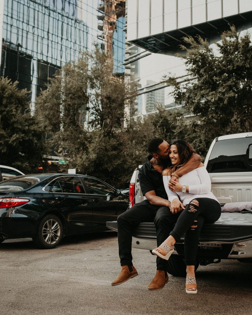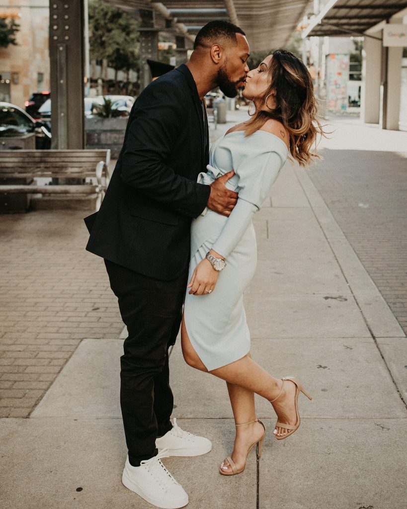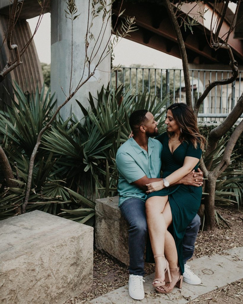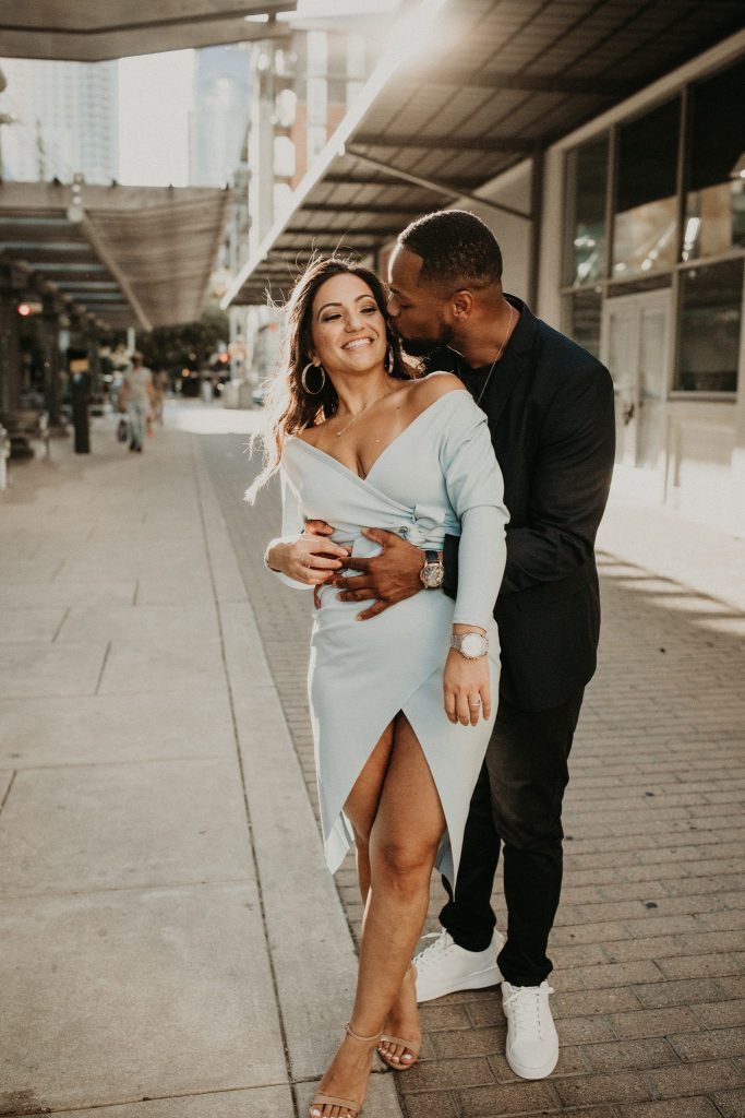 Sepeideh and Mario’s urban outdoor engagement shoot is full of joyful energy and their playful personalities. The couple who had never had professional photos taken were a bit nervous. However, Nikk Nguyen Photo made the process easy and comfortable for the couple, allowing them to be themselves. Sure enough, their personalities took over, and Sepeideh and Mario’s urban outdoor engagement shoot completely stole our hearts. Dancing down the streets of Austin while making each other laugh created photos that we know Sepeideh and Mario will cherish forever. Nikk Nguyen Photo chose an outdoor urban setting so the couple could forget their nerves and just enjoy the city of Austin. “Walking down the street, sitting in the park, and exploring the city – sometimes the simplest things create the most memorable moments,” and we couldn’t agree more with Nikk Nguyen Photo. Keeping things simple and having fun with the one you love always makes for the perfect photo. We can’t help but smile as we scroll through Sepeideh and Mario’s urban outdoor engagement shoot. The couple’s smiles are absolutely contagious, so keep scrolling to see more.