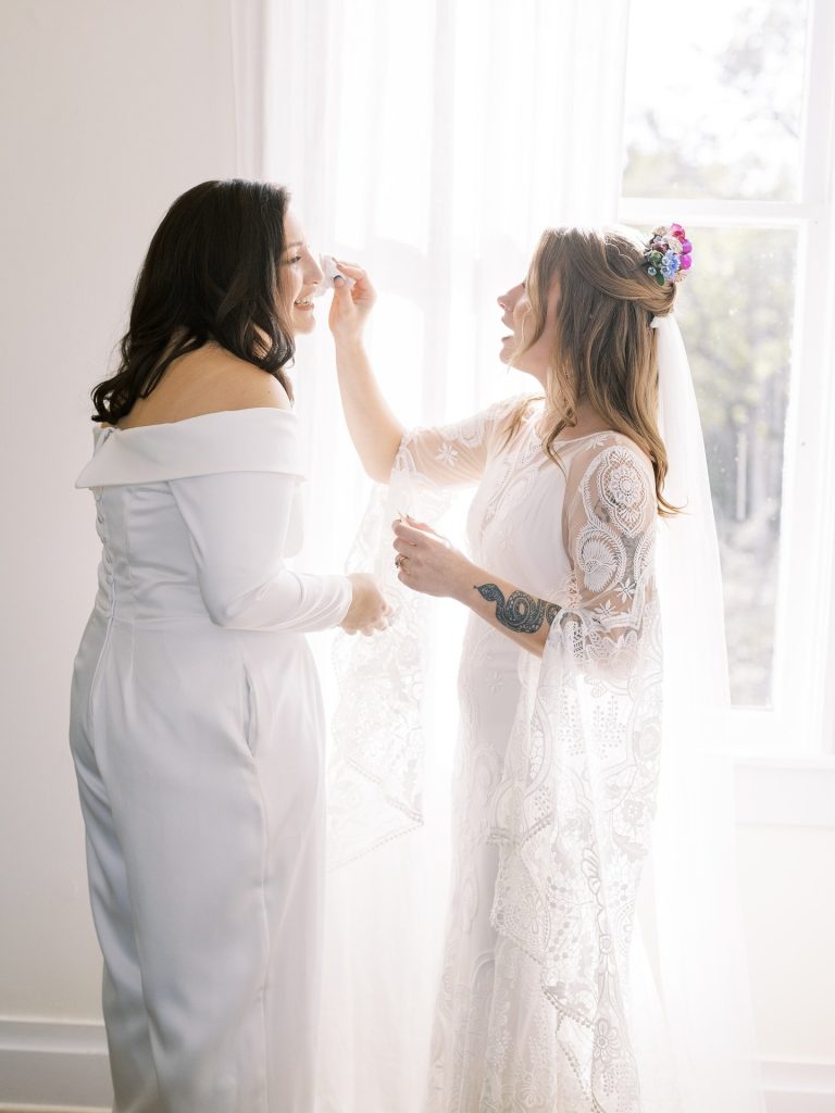 Emma & Jaclyn’s wedding was bursting with color, love, and laughter—from their bold blooms to their radiant wedding party. These two brides brought their unique styles together beautifully!