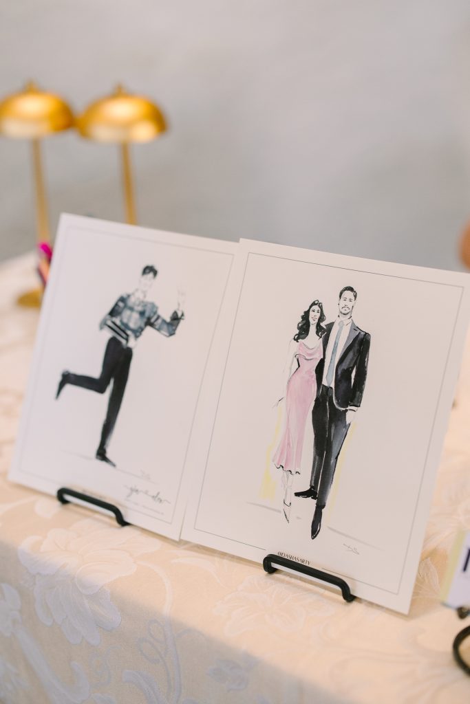 Zia and Alex’s wedding was a romantic affair filled with European-inspired elegance and timeless charm. Set at a villa-style venue with terracotta rooftops and grand staircases, their day was adorned with lush florals, custom illustrations, and candlelit tablescapes. From their emotional ceremony to the black-and-white dance floor, every detail was picture-perfect.