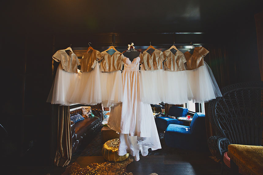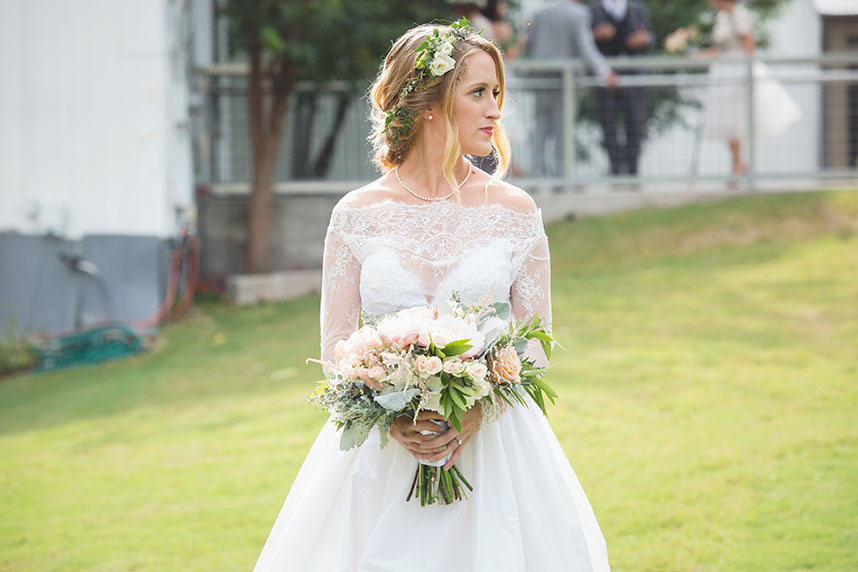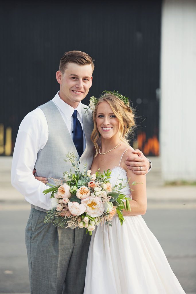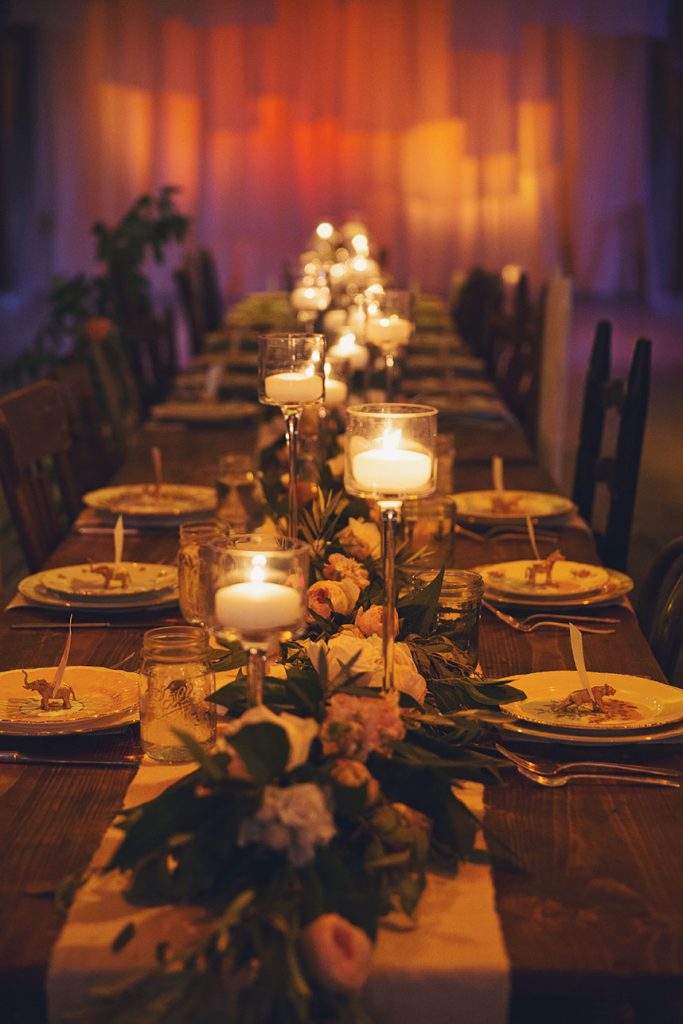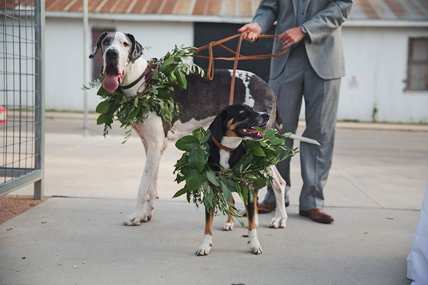 SPECIAL TOUCHES: The couple loves their dogs and couldn’t think of a better addition to their special day than including their favorite pups, Link and Lula. Both dogs wore oversized crowns of greenery and baby’s breath around their necks. They sat to the side of the bridesmaids and groomsmen during the ceremony while Tim’s mom read from, “How Falling in Love is Like Owning a Dog.” Hayden’s favorite line is the last, “But most of all, love needs love, lots of it. And in return, love loves you and never stops.”