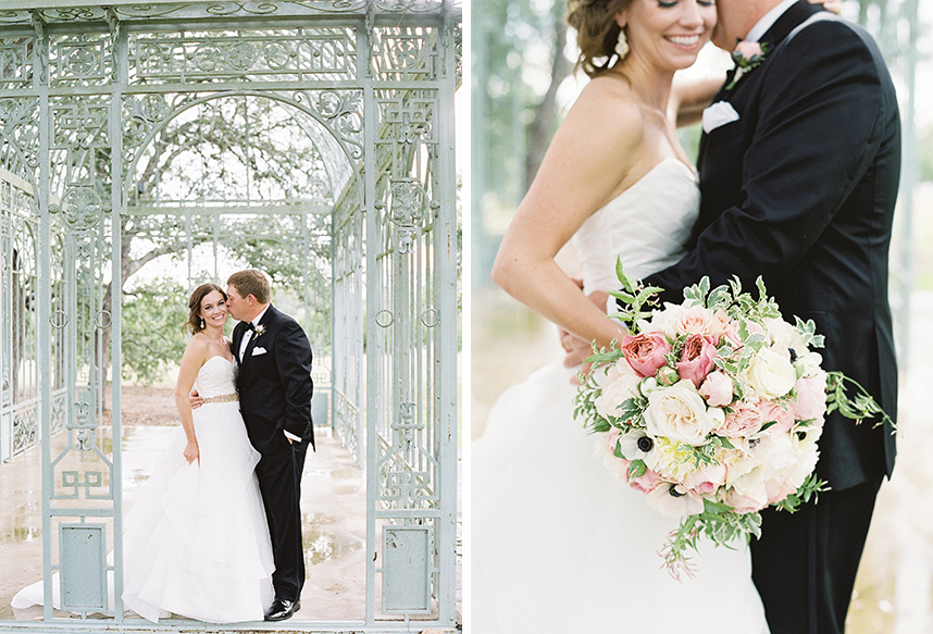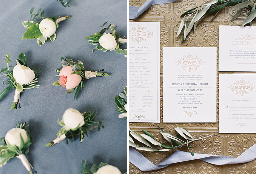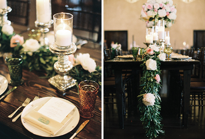Chock-full of sweet antique decor and charm, we’re loving Christina and Sam’s vintage-inspired pastel wedding held at Ma Maison. Dripping in warm sunlight, Mint Photography perfectly captured the day’s abundant happiness from ceremony to reception. Soft and hues of powder blue, peach, blush and rose brought the day an added sweetness in everything from the bridesmaids’ gowns to the table decor. Delicate florals in the same pale pink and peach shades lined the table and adorned the four-tier cake by Sweet Treets Bakery. Guests were treated to a menu of delectable bites from Royal Fig Catering as they joined the newlyweds in celebration of their special day! Cheers to their lovely evening!