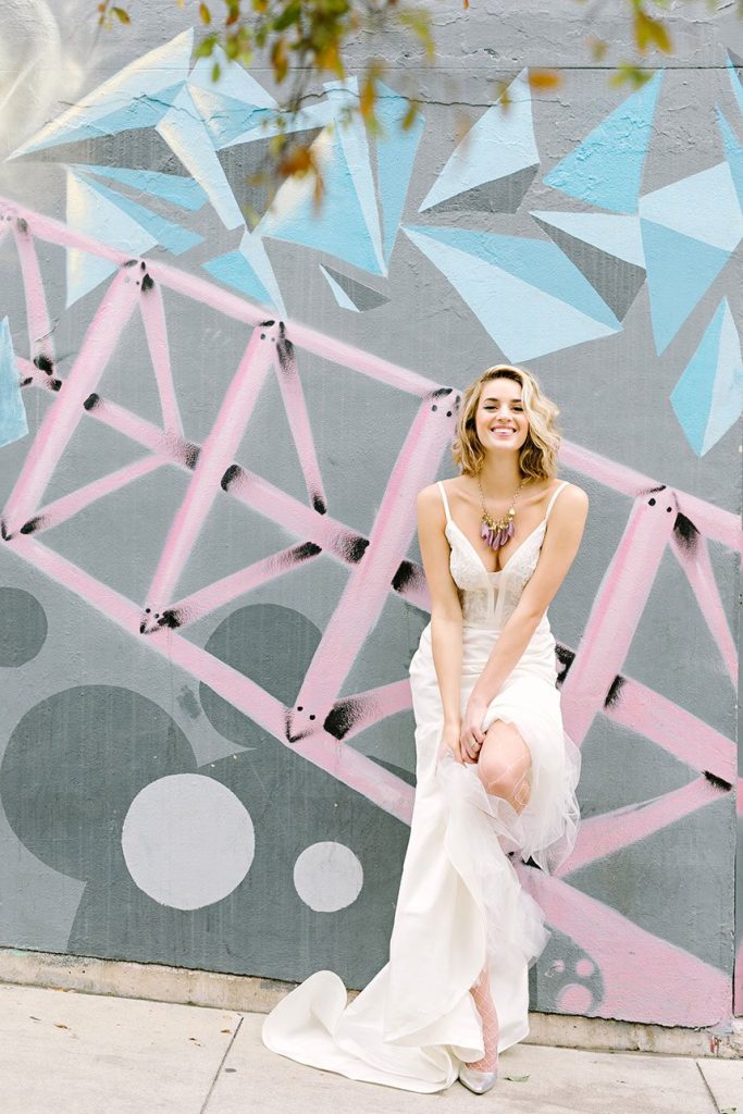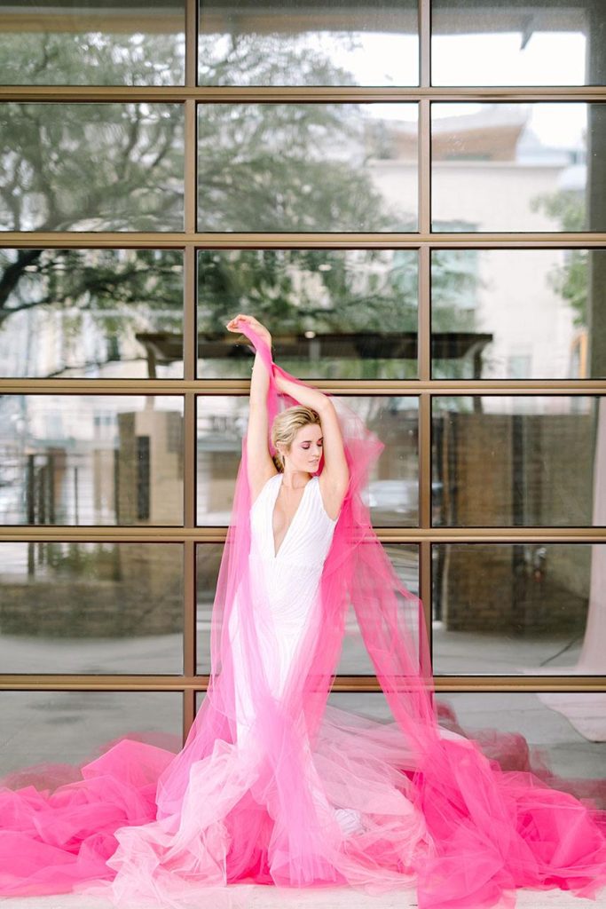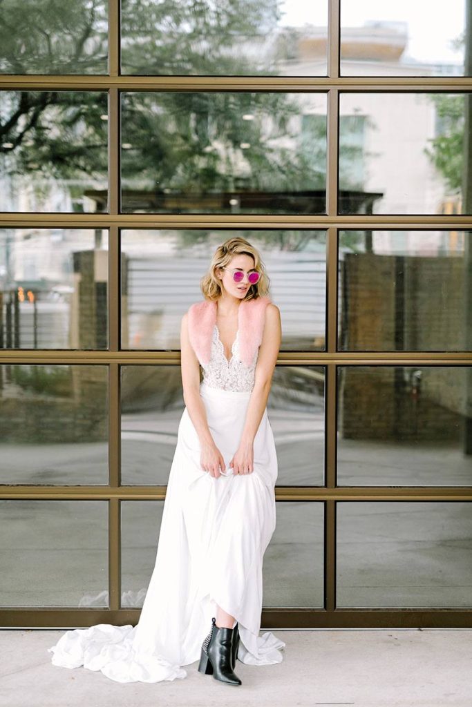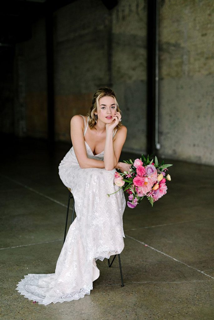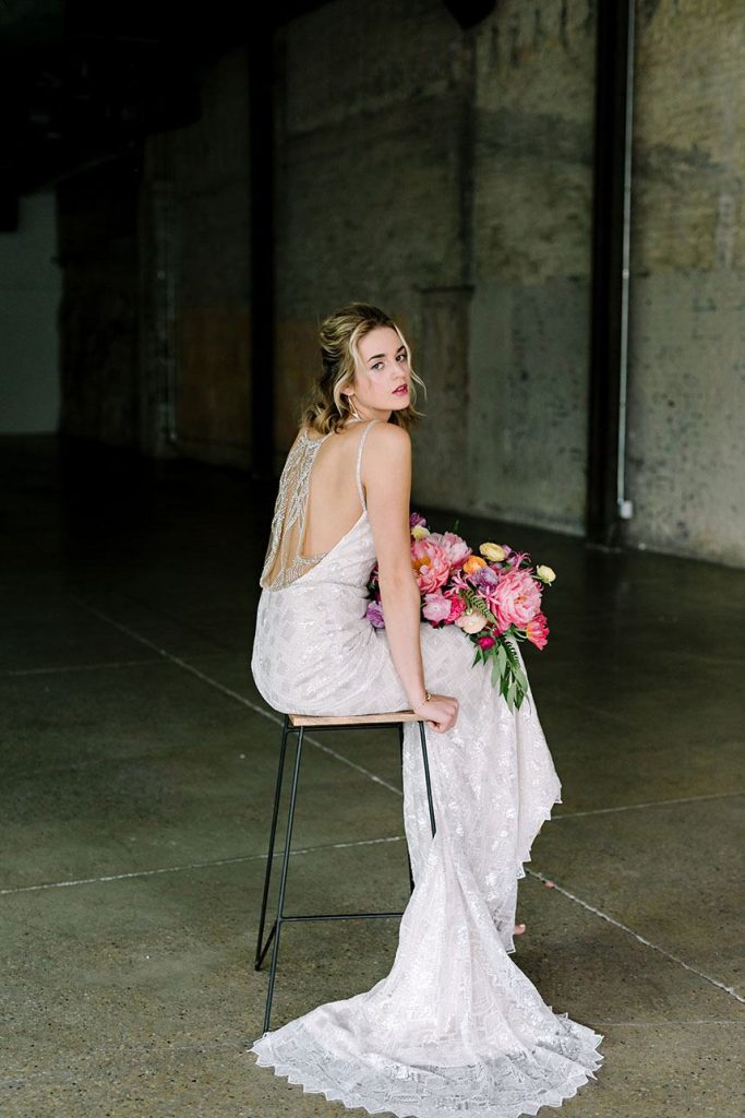 We’ve been so excited to share our Vivid Beauty fashion editorial from the all-new Spring/Summer 2018 issue of Brides of Austin, we can hardly stand it! We went a for a spirited and fashion-forward vibe with 800 Congress as the perfect backdrop for this edgy shoot perfectly captured by Julie Wilhite Photography. An editorial centered on vivid beauty of course needs a bright, bold look, and the beauty team at flAIR Style Lounge delivered! Neon eye shadow, bold brows and effortless waves give fresh and contemporary vibes to the incredible selection of chic wedding gowns from Austin’s best bridal boutiques, accentuated by a gorgeous bouquet from The Bloom Bar and stunning jewelry from The Menagerie. Don’t miss part two of our Vivid Beauty editorial tomorrow, and see all the gorgeousness from the shoot in the video by The Bird & The Bear below! Enjoy!