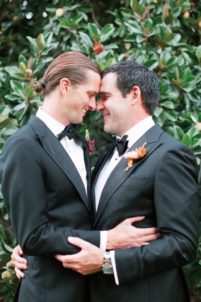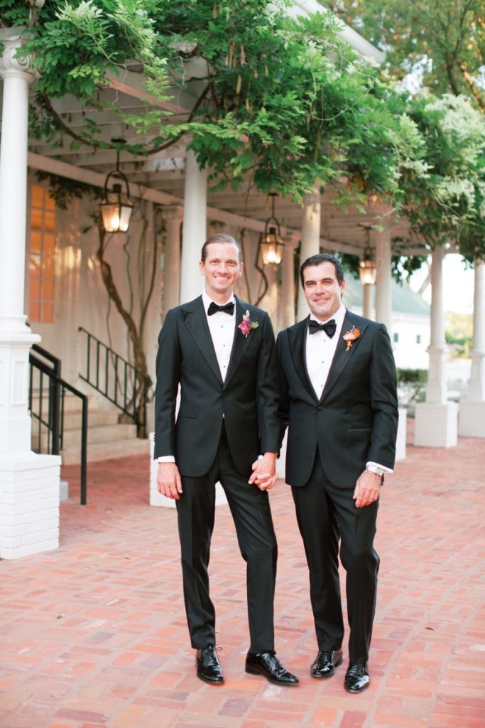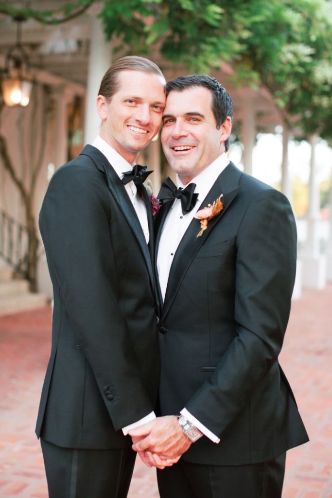 From the grooms: “The vow renewal at The Woodbine Mansion was perfect. A simple evening with beautiful weather. The backdrop of The Woodbine Mansion under the large oak and magnolia trees was magical. Our vow renewal took place inside followed by drinks and dinner on the lawn.”