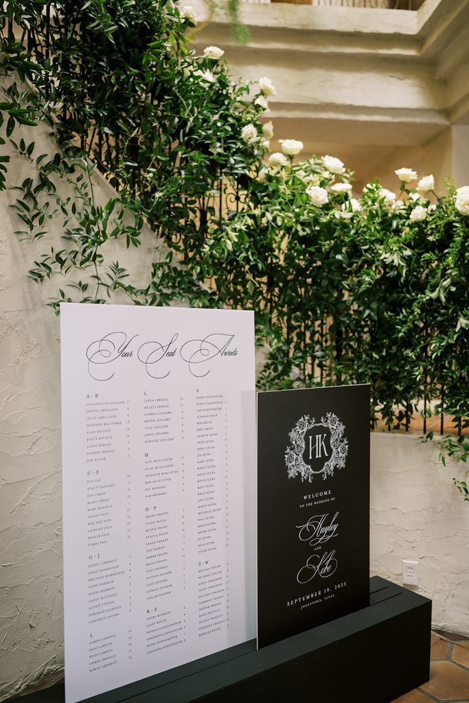 This month we’re highlighting Hayley and Kobe Szura’s wedding at Villa Antonia. Perched high above the Texas Hill Country, the venue’s sweeping views and Mediterranean-inspired architecture created the perfect setting for their elegant celebration filled with lush white florals, timeless black-and-white style, and unforgettable moments shared with their closest family and friends.