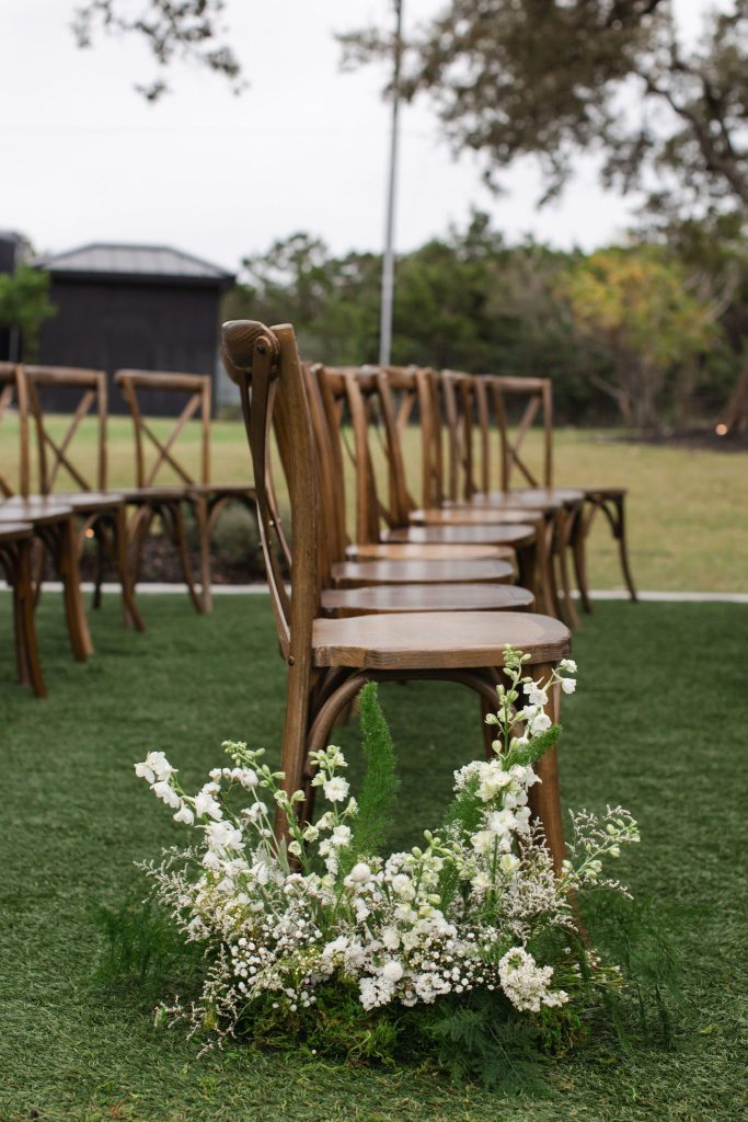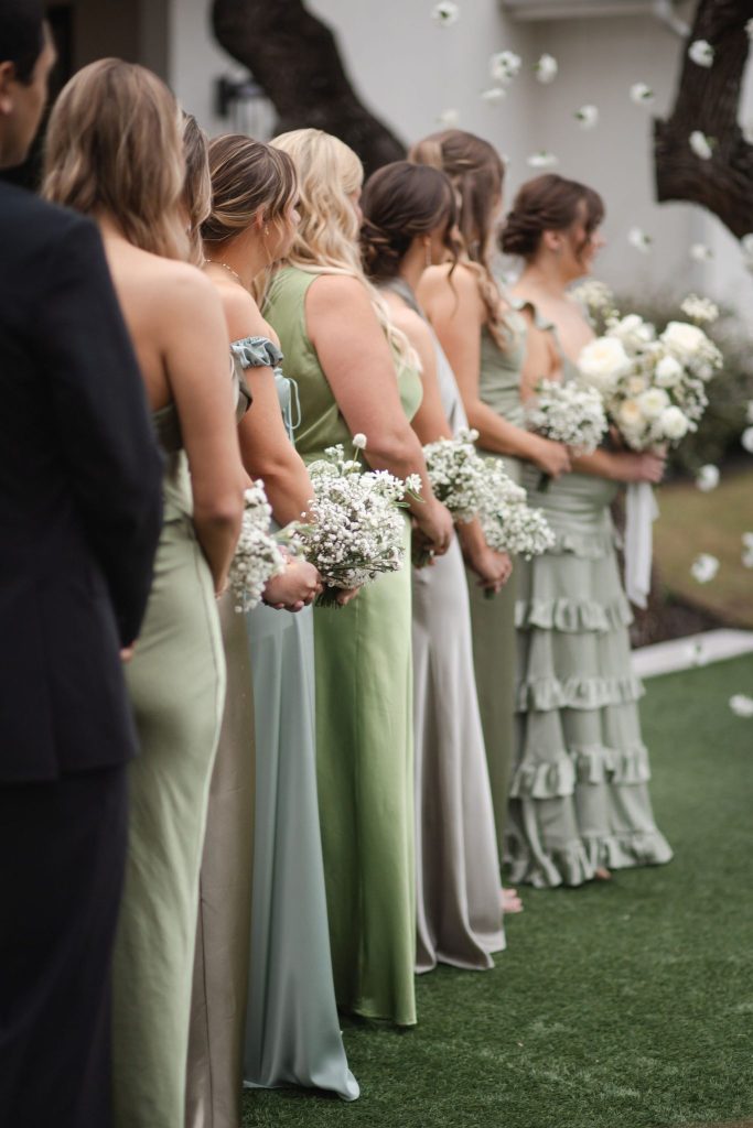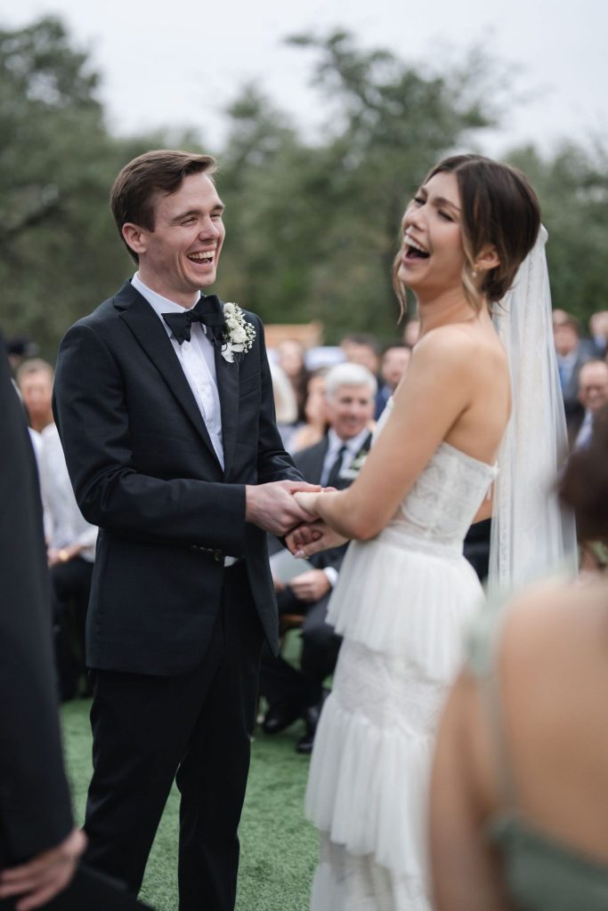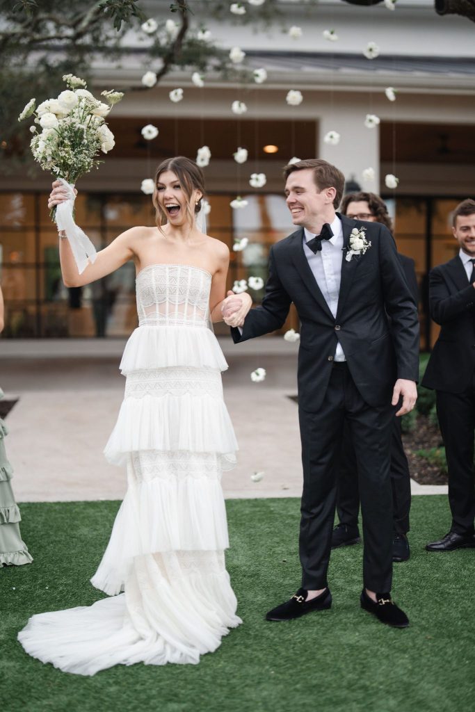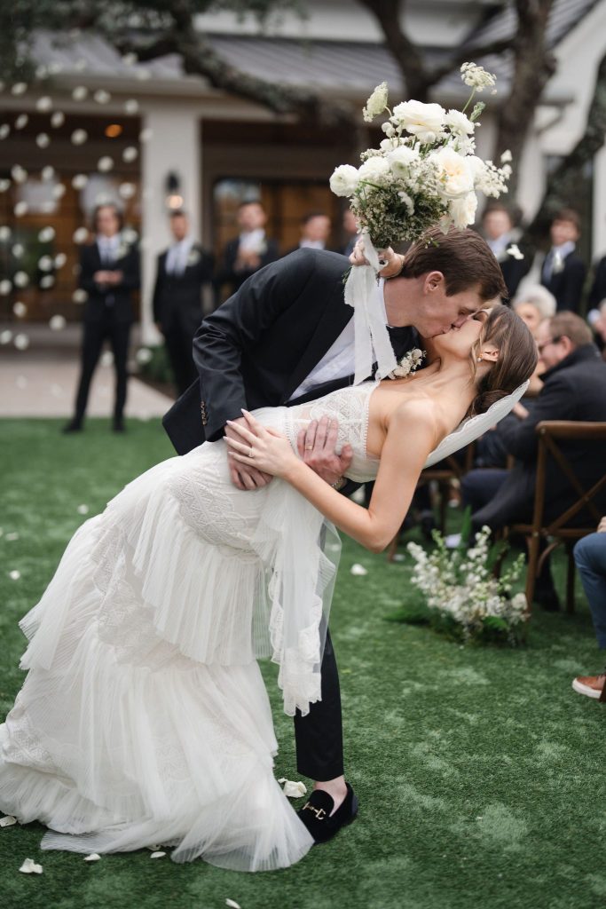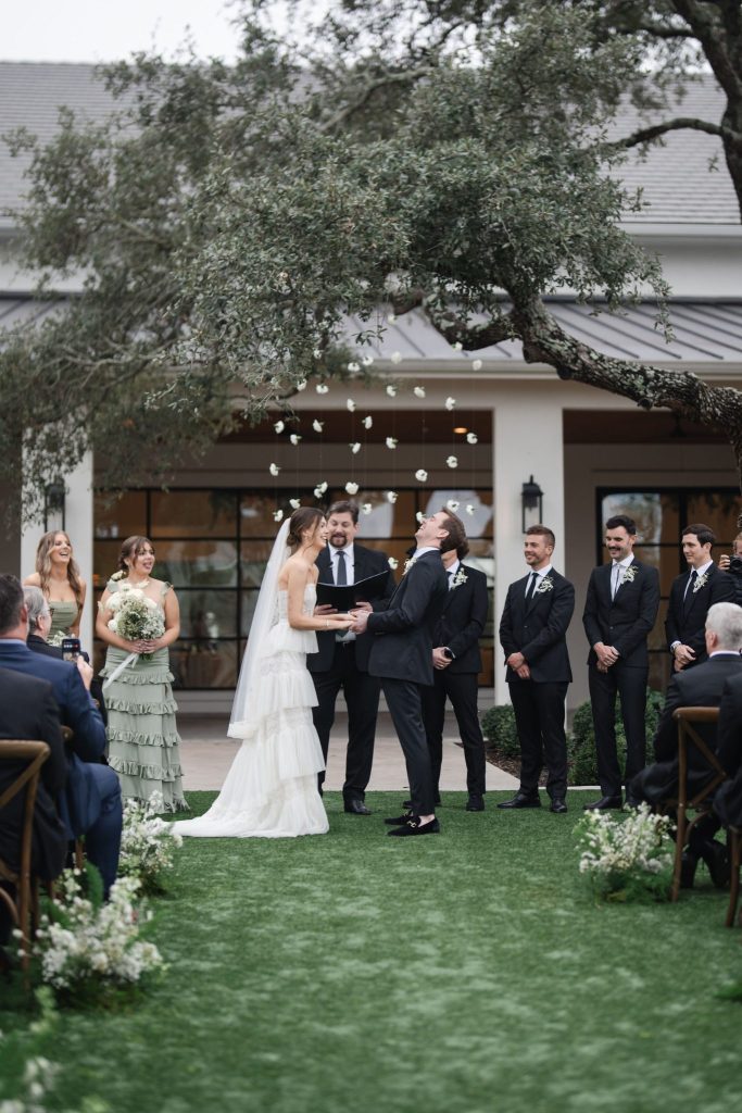 The couple’s outdoor nuptials featured classic green and white florals by Unforgettable Floral. Along with a beautiful setting, Delaney and Nico prioritized family on their big day. “From walking down the aisle with my brothers and father, to the heartfelt ceremony officiated by my uncle Hunter — which included a touching reading from Nico’s godmother, Caren — every moment was filled with love and significance,” writes the bride.