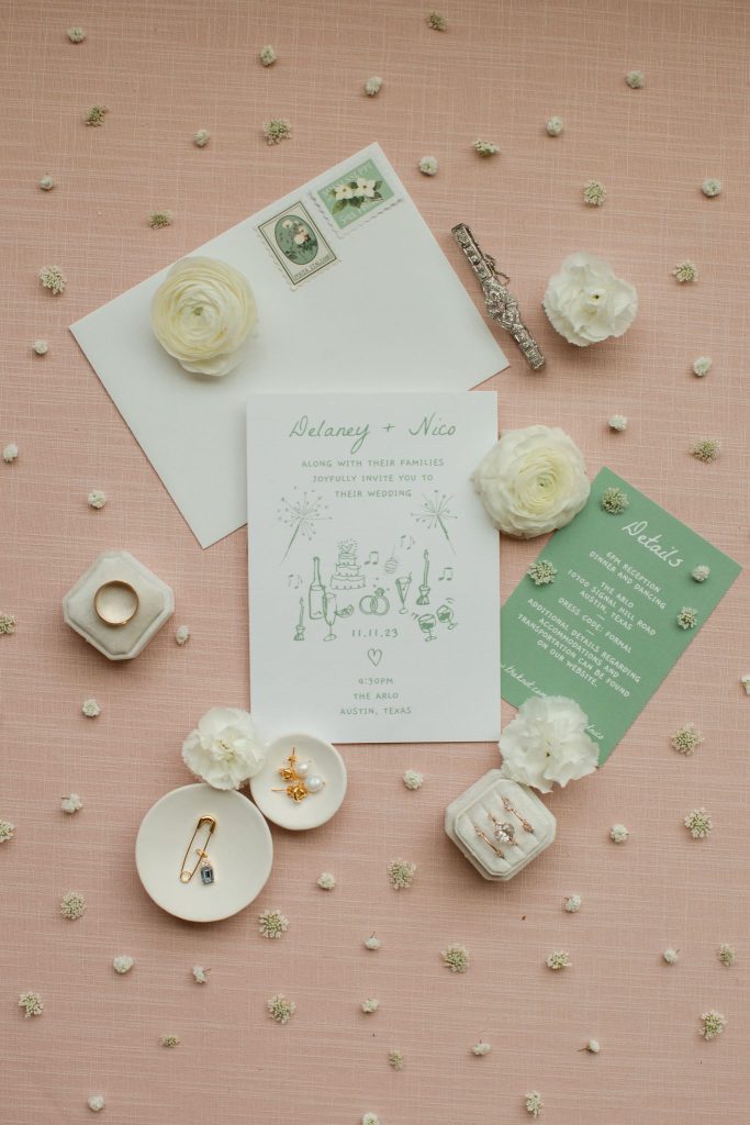 For June, we’re featuring a classic green, black and white wedding. Keep reading to discover Delaney and Nico’s November 11, 2023 vows!