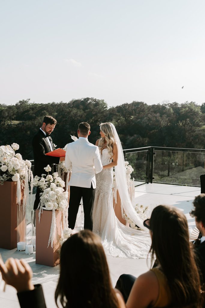 The Summerhills began their wedding day with an unforgettable sunrise moment, exploring the scenic grounds of the Videre Estate on a Can-Am Off-Road ride. They shared memories of their relationship as they looked out over the estate’s breathtaking views, savoring a peaceful start to their day before diving into the festivities. While Mackinsey and her bridal party got pampered in the estate’s luxurious bridal suite by Think Brink Beauty, the excitement for the day ahead continued to build, and content creator Moments by Gabby captured it all.