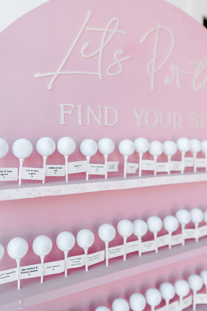 Their golf-themed seating chart added a playful touch, with each guest greeted by a personalized tee and golf ball. As the evening unfolded, guests enjoyed yummy bites and then hit the dance floor, celebrating late into the night.