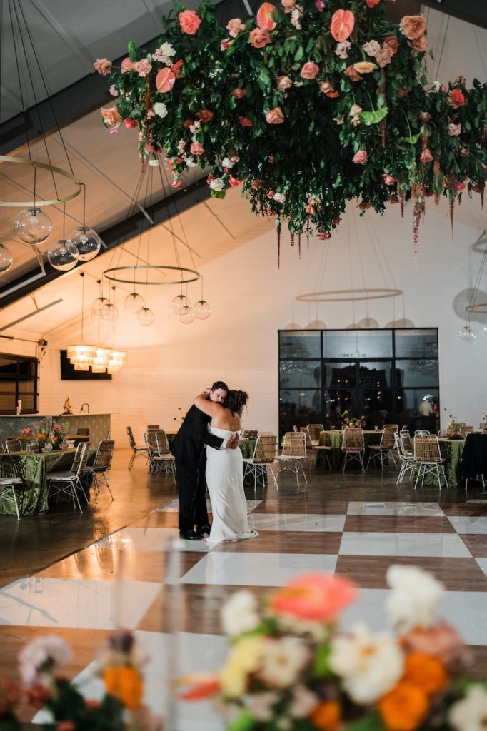 The reception area was a true feast for the eyes, featuring whimsical garden tablescapes adorned with textured linens from BBJ La Tavola that added depth and richness to the design. Every table was a unique work of art, inviting guests to immerse themselves in the couple’s world of color and creativity. Peak Beverage was slinging delicious drinks and Soho Catering and Consulting served up delicious plated dinners.