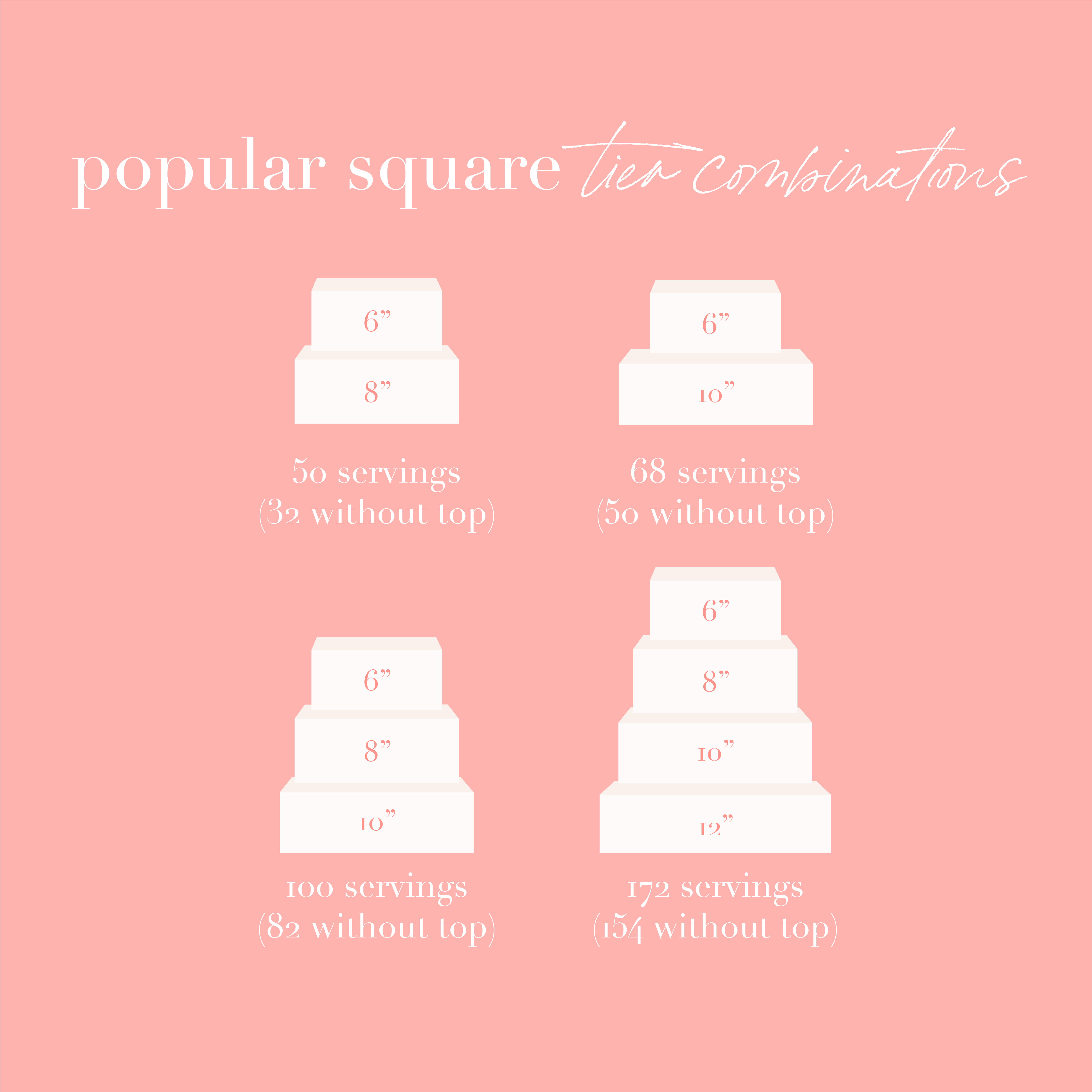 Are you having one cake or multiple cakes? Remember the 80 percent rule includes enough cake for all your guests between ALL the cakes you’ll have, not just the main bride’s cake.