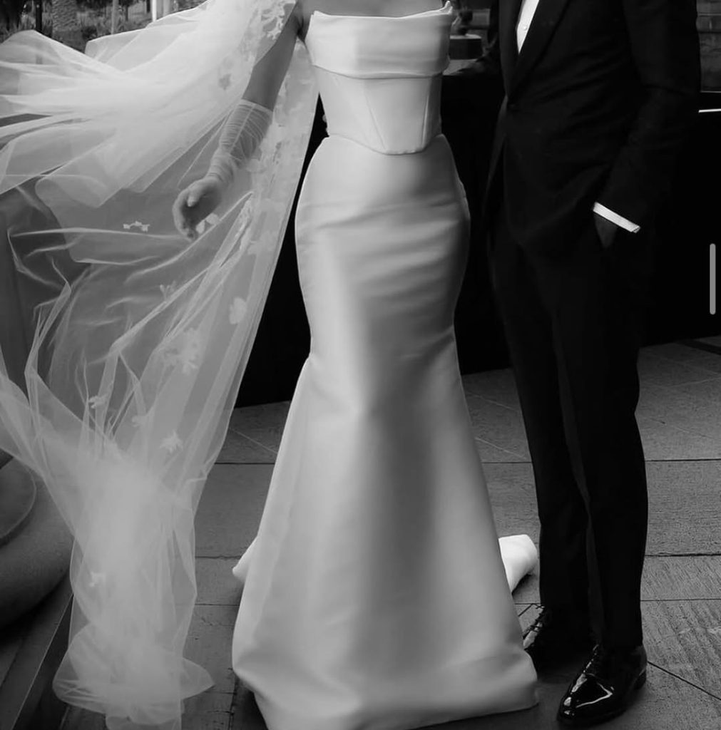 Mermaid: A fun, beautiful silhouette for the bride who has a playful, sassy side. Mermaid dresses are fitted from the bodice all the way to the knee, where they flare out to resemble a mermaid’s tail. A flare starting just above the knee is called a trumpet fit, while a flare starting just below the knee is a true mermaid fit.