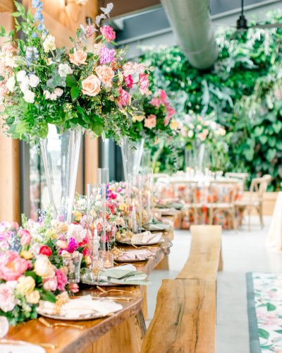 Wildly Cultivated Floral Design did an amazing job of creating a sea of elegant, dreamy blooms at the Walden Retreats. We cannot stop swooning over the vibrant hues of these blooms and the table setup. Together they painted a breathtaking backdrop for the most stunning wedding!