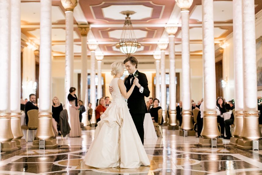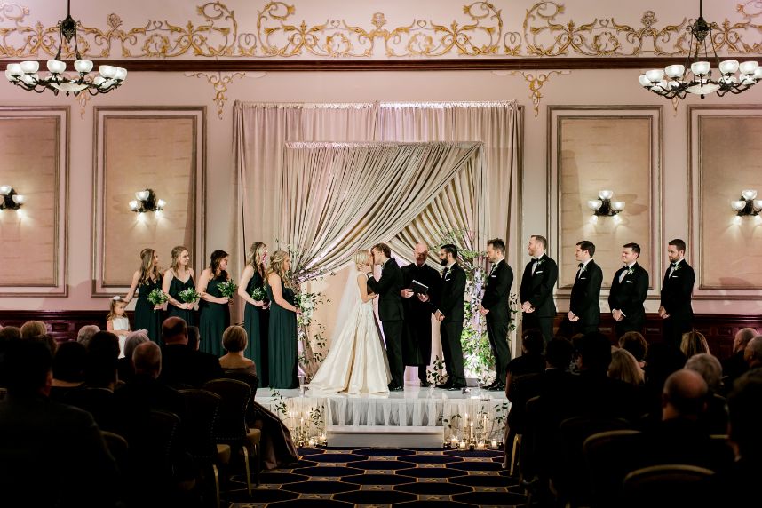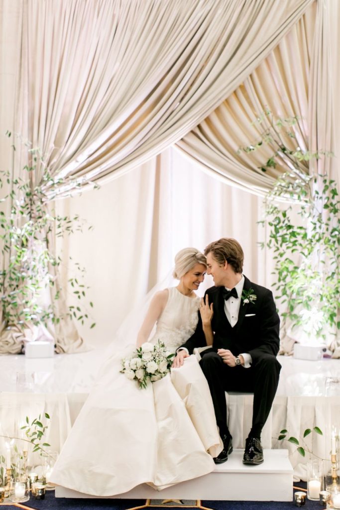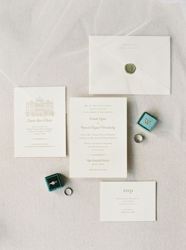 Getting married in colder months doesn’t mean your event has to be a dreary one, and Cassie and Travis’s elegant evergreen wedding is all the proof we need! Held at The Driskill, this wedding is just as elegant and stately as it is intimate and cozy-feeling, and we just love how organic the florals on every tablescape make it all feel. The most perfect invitations from Paper Place are sure to set the tone for your big day before your guests even arrive. Our favorite part of this wedding scene is the beautifully framed seating chart trimmed with florals. We want to follow the yellow brick road straight to this elegant, emerald wedding. Cheers to Cassie + Travis!