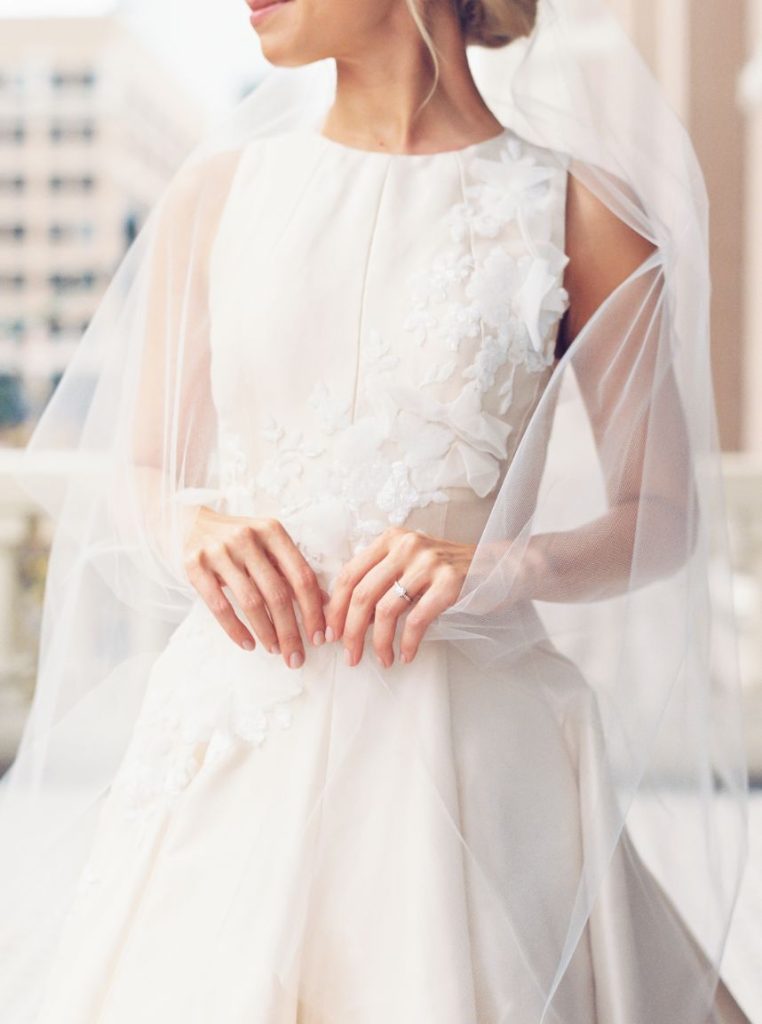 From the bride: “My favorite detail was the bouquet, which had three different family heirlooms incorporated into it for remembrance: an embroidered handkerchief owned by my great-grandmother, a necklace charm that my maternal grandmother wore nearly every day, and a ring owned by my paternal grandmother.”