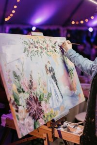 There are many reasons to consider a live painter such as Golden Hour Live Art, Alyssa Love Art, Fine Art by Pearl, A. Curtis Creations, Jennie Lou Art or Trinity Brushworks for your wedding! Beyond the memorable experience and entertainment it provides your guests, you’ll receive a unique and personalize piece of art that holds sentimental value from your wedding day.