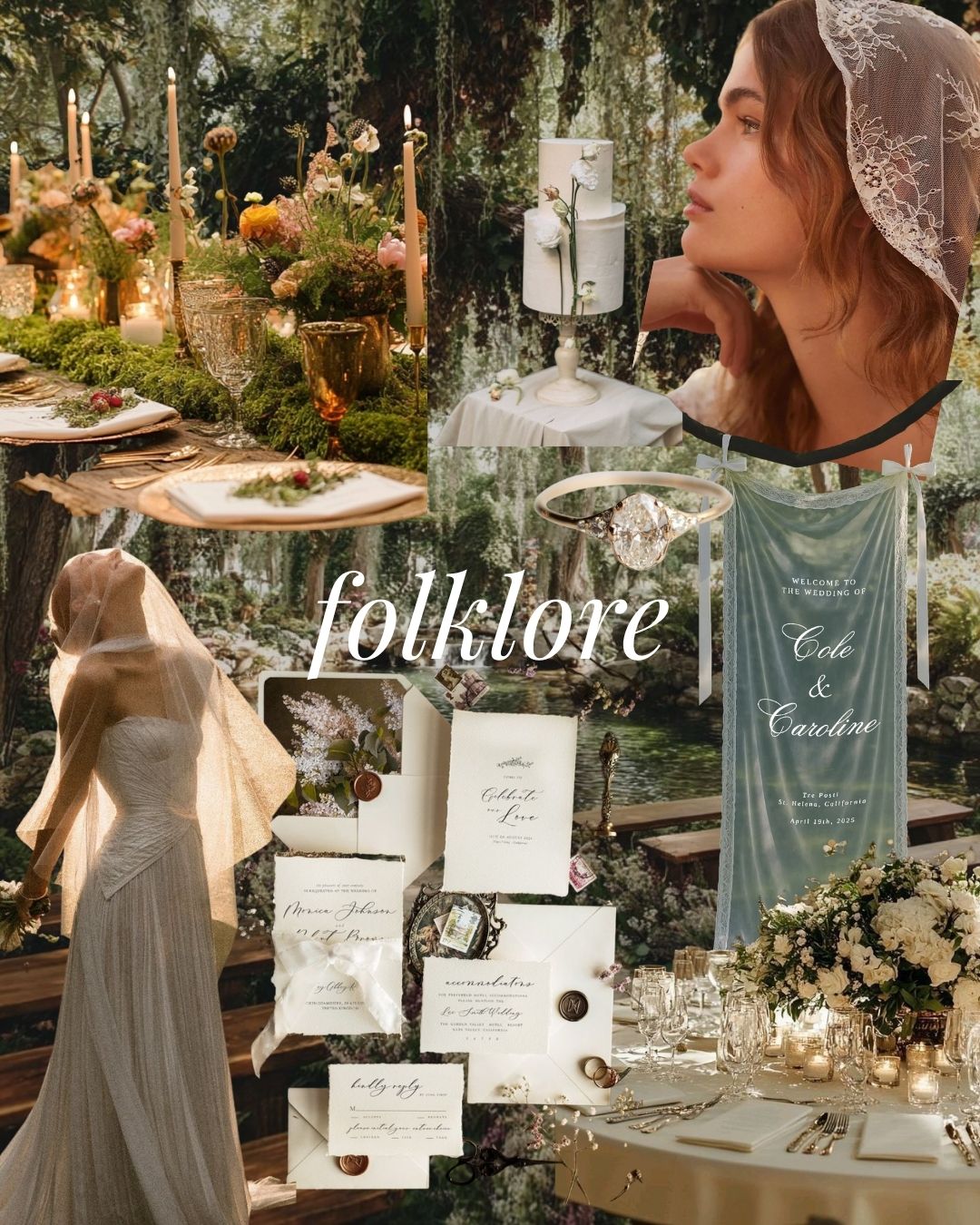 For engaged couples drawn to a more ethereal, storybook feel, a “Folklore” inspired wedding creates an atmosphere of quiet romance and timeless beauty. Imagine vows exchanged in the “August” breeze beneath towering trees, with soft neutral tones and wildflower arrangements, your love will reflect like a “Mirrorball” throughout this theme. An ethereal gown and handwritten details set the stage for an intimate day that feels deeply personal, like an “Invisible String” tying your two souls together. Every moment, planned from the warmth of candlelight that feels like a “Cardigan” to the dreamy simplicity of a day filled with “Peace,” makes a “Folklore” wedding the perfect way to celebrate a love when you’ve found “The 1.”