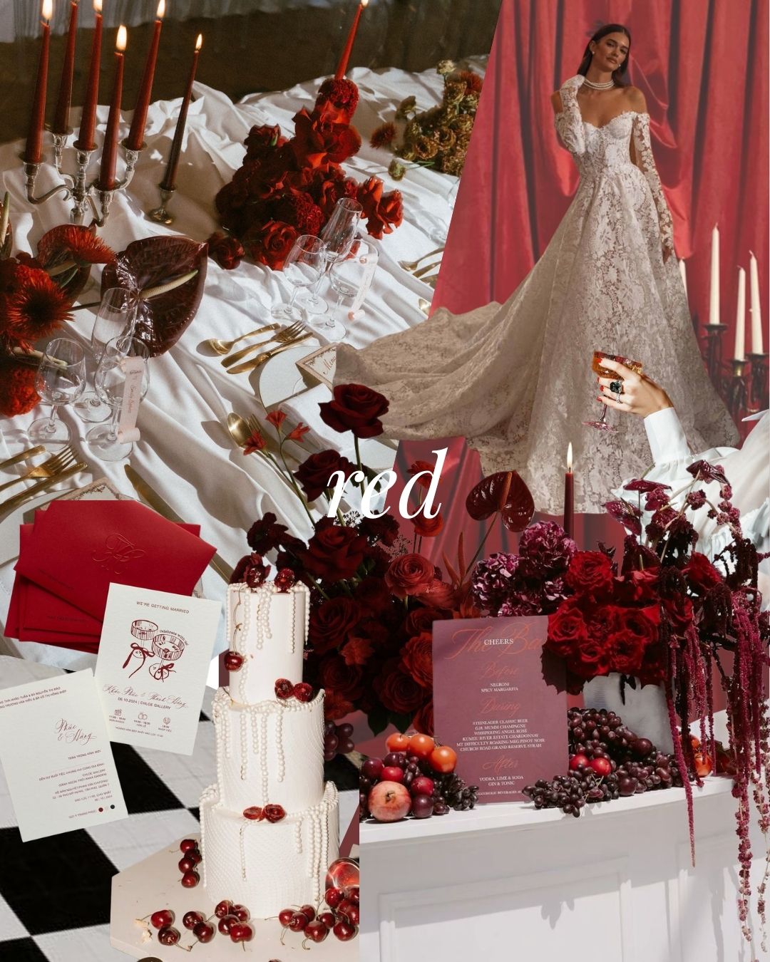 For engaged couples dreaming of a wedding filled with passion and romance, a “Red” era theme is the perfect inspiration. Imagine the opportunity to “Begin Again” under the glow of candlelight, surrounded by deep crimson florals and rich details that feel straight out of an autumn love story. A lace gown with timeless drama, a cake adorned with cherries and pearls, and invitations burning “Red” set the stage for a day that’s sure to be on “Holy Ground.” Celebrate the joy of being in a“State of Grace” making this theme the ultimate way to say I do under the “Starlight.”