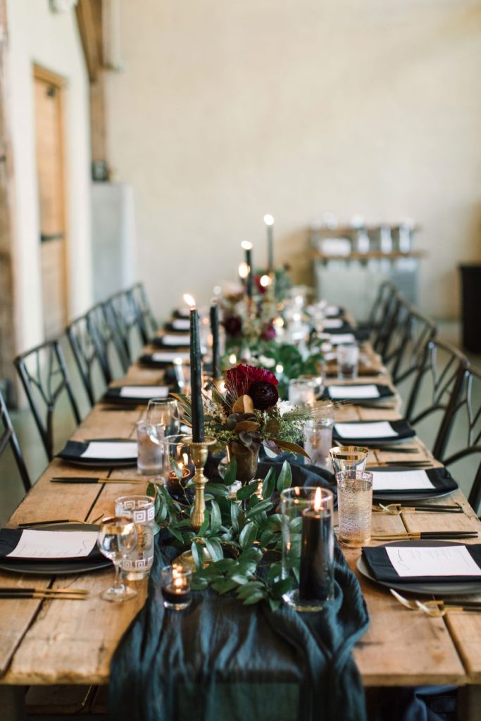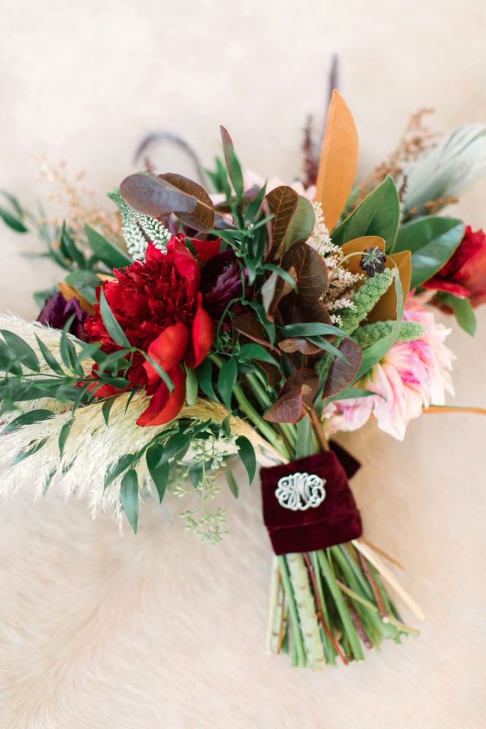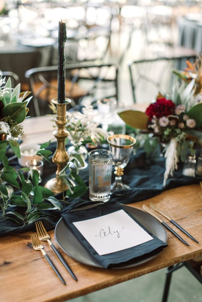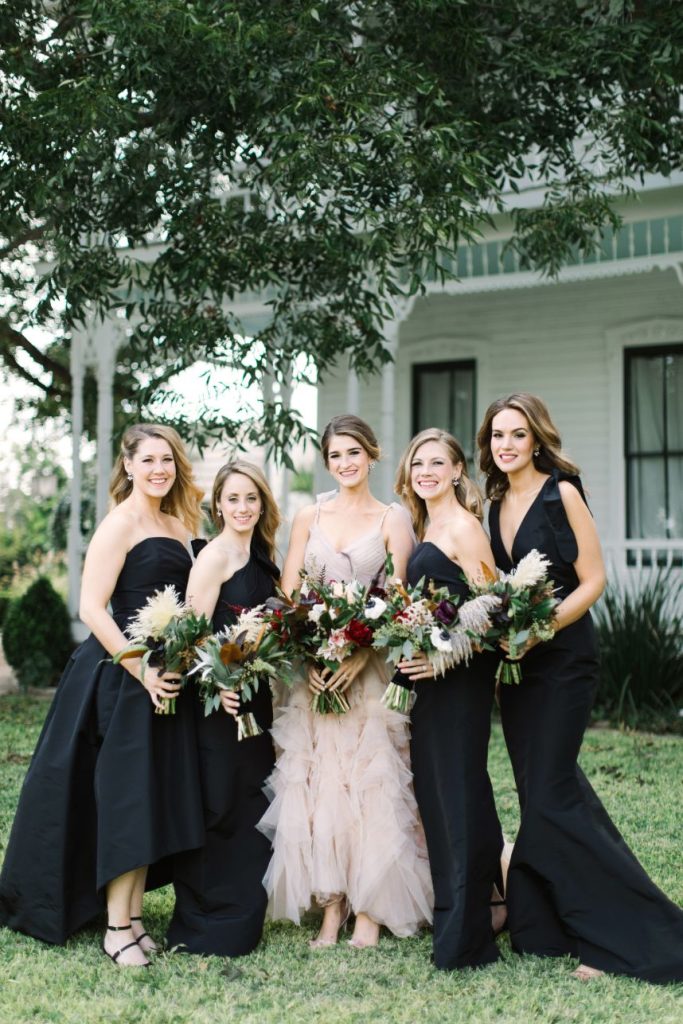 Held at the stunningly simple BARR – mansion, ballroom & farmstead, Aly and David’s Austin style wedding with a New York twist speaks for itself with its understated boho features and nostalgic, eclectic mood. This venue is a one-stop-shop due to its hosting of the event, providing of the cake, catering and even bartending services for the evening, and we can’t get over the perfectly retro look of it all. From vintage brass candelabras on gauzy tablescapes to cushy leather armchairs and bohemian furs and cowhide, the decor and rentals from Whim Hospitality and Loot Rentals marry all other aspects of this big day together. Our favorite part was the couple’s choice of incorporating “beer burros,” furry friends carrying saddles filled with Shiner Bock local beer, into their cocktail hour. There is nothing we don’t adore about this wedding featuring a New York take on Austin style. Cheers to Aly and David!