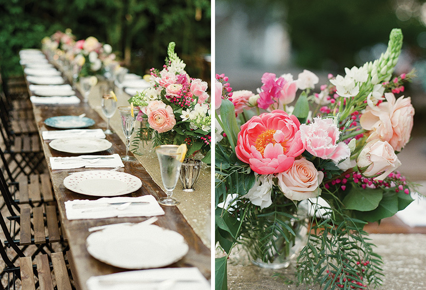 The moment we saw Megan and Louis’s whimsical garden party wedding, we knew we had to share it with all our lovely brides-to-be! Planned by Westcott Weddings, bride and planner set to work on creating this girlie, pink affair. Every detail captured by Sophie Epton Photography from the bride’s accessories to the floral-decked tablescapes is inspiring. Perhaps our favorite scene from the event, was the couple’s altar. Megan and Louis were married under a giant tree at Mercury Hall with floral garland draped above from it’s branches. The reception scene looked fantastic thanks to rentals from Loot Vintage Rentals and the dessert bar from Green Lily Bakery, and Tiny Pies provided the cutest mini treats for favors. Stay tuned for the Fall/Winter issue release to see this darling soiree in print along with many, many more! Cheers!