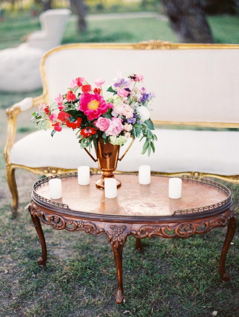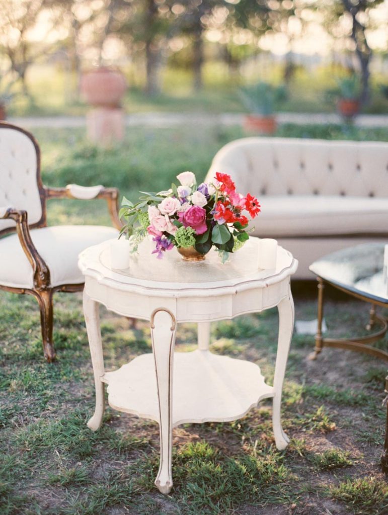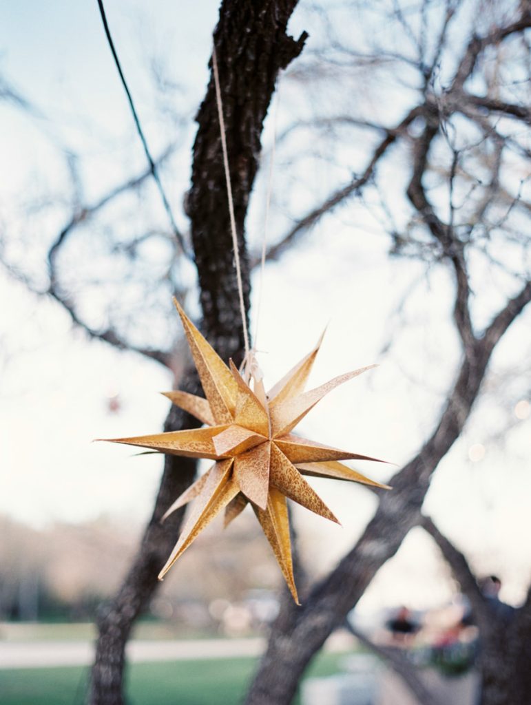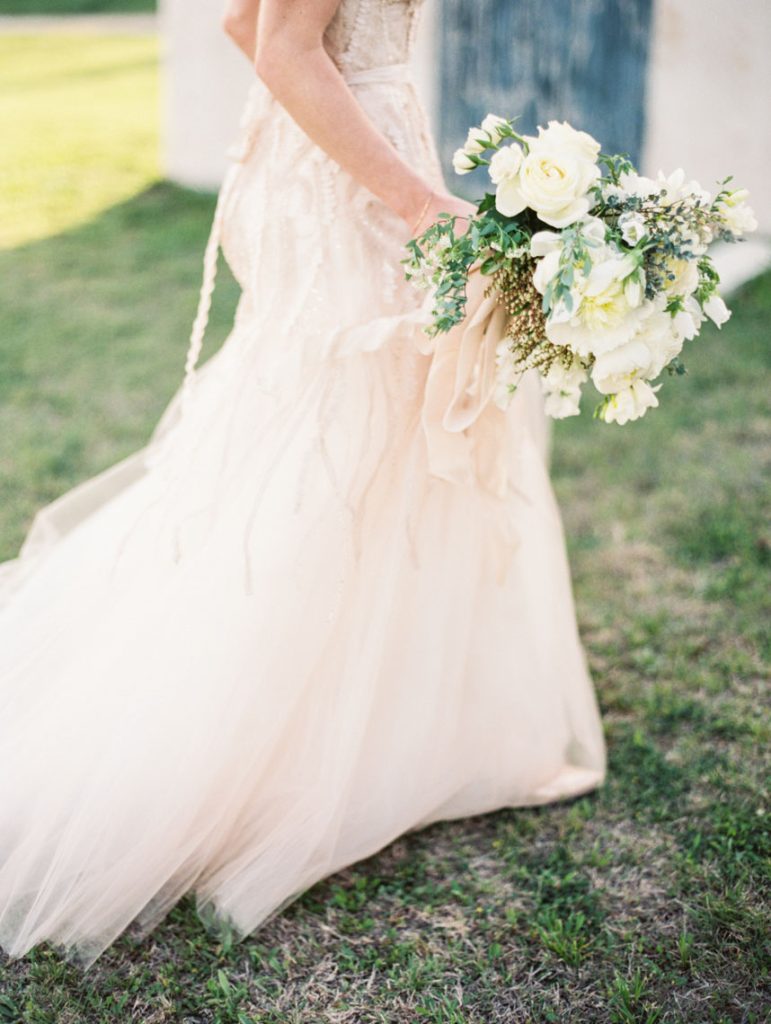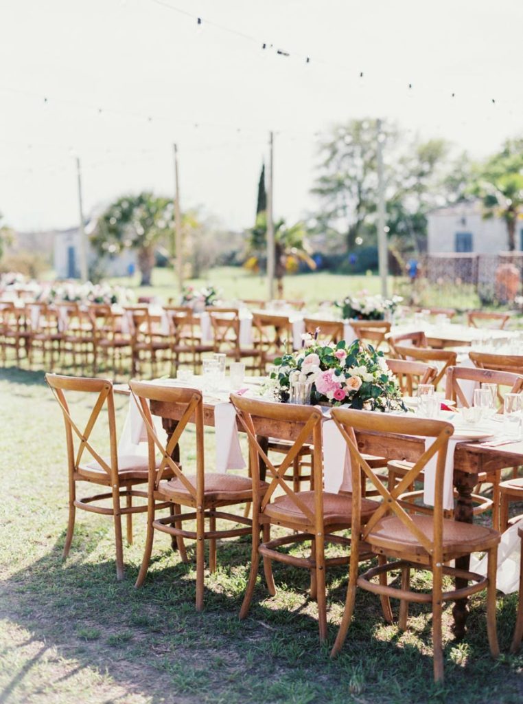 It looked just like the French countryside. Greenery and blush pink peonies crowned chairs and doorways. Stone ledges and charming blue-doored garden cottages set along on the sprawling property. The magnificent stone mansion overlooked the lawn filled with guests mingling on their way to wooden chairs facing wide-open spaces. Gold and cream stars cascaded from tree branches over cream-colored vintage couches and sky blue chairs. Sheer white fabric dressed long wooden tables with wooden chairs and lights strung above. It was a festive garden party nestled in the heart of central Texas, and there was a beautiful wedding that was about to transpire.