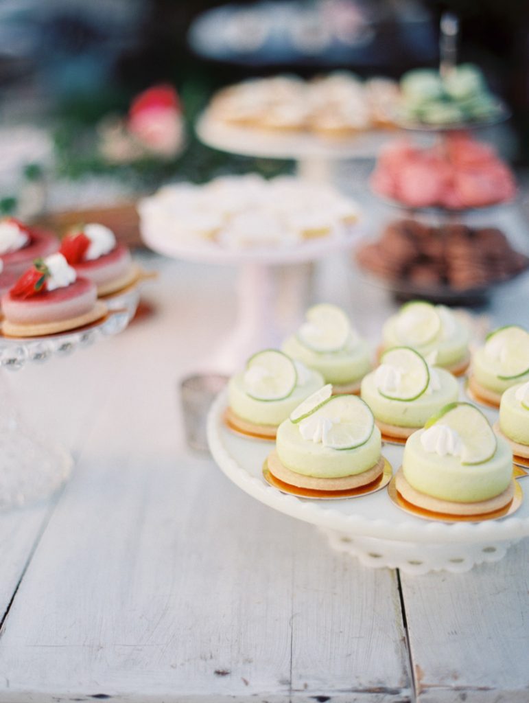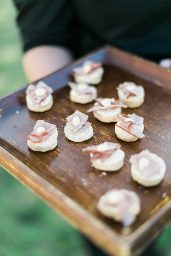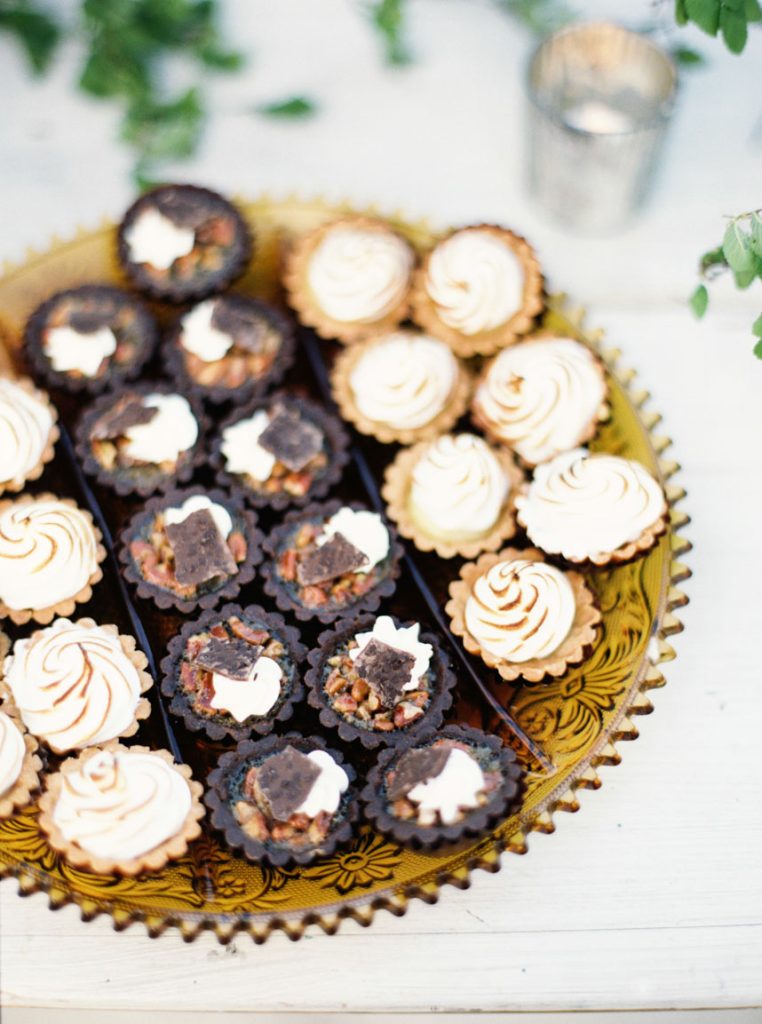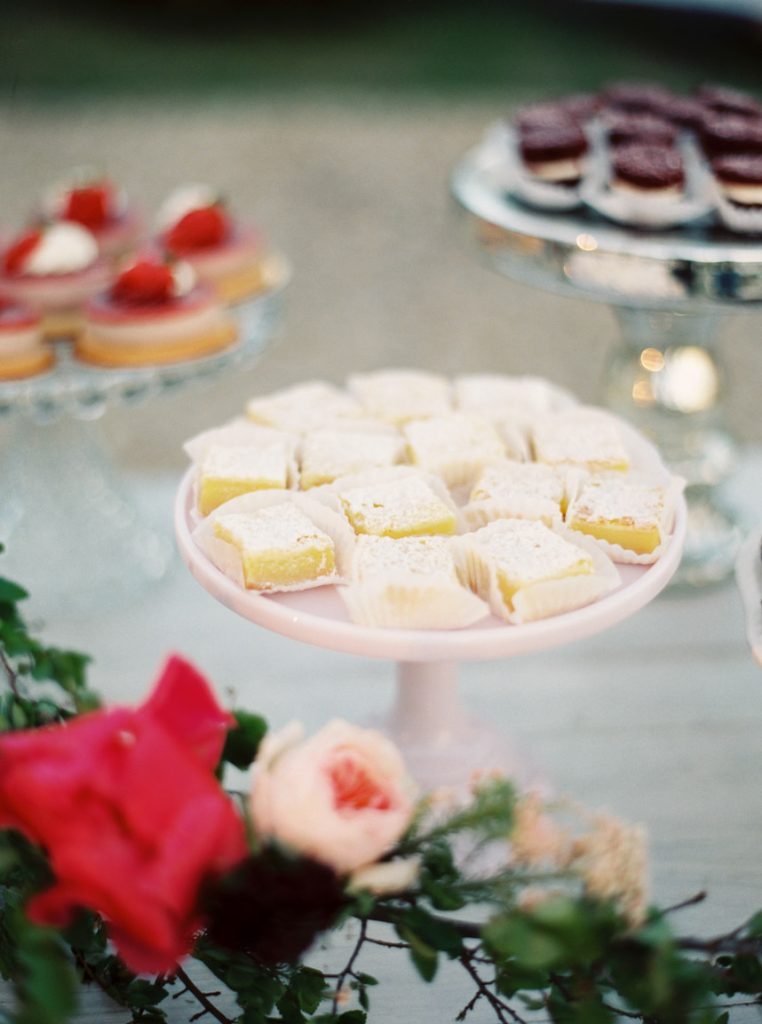 The reception was a secluded soiree with farm tables, delicious food, and soul music. The couple shared their first dance to “Lovin’ in my Baby’s Eyes” by Taj Majal. The blues music filled the open field while loved ones looked on at the joyous bride and groom. Dinner was served family style with a decadent menu with southern favorites from grilled Texas shrimp and grits to homemade brown butter cornbread. The dessert table was a huge hit with cheesecakes, brownies, lemon bars, and Whoopie pies. While they were eating, guests put on their pastel paper crowns – a fun English tradition the couple incorporated. The night was perfect for mingling and celebrating Paige and Chris. “It was the right size to where we got to talk to everybody and enjoy the people there,” Chris says.