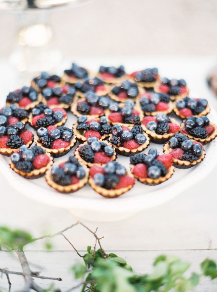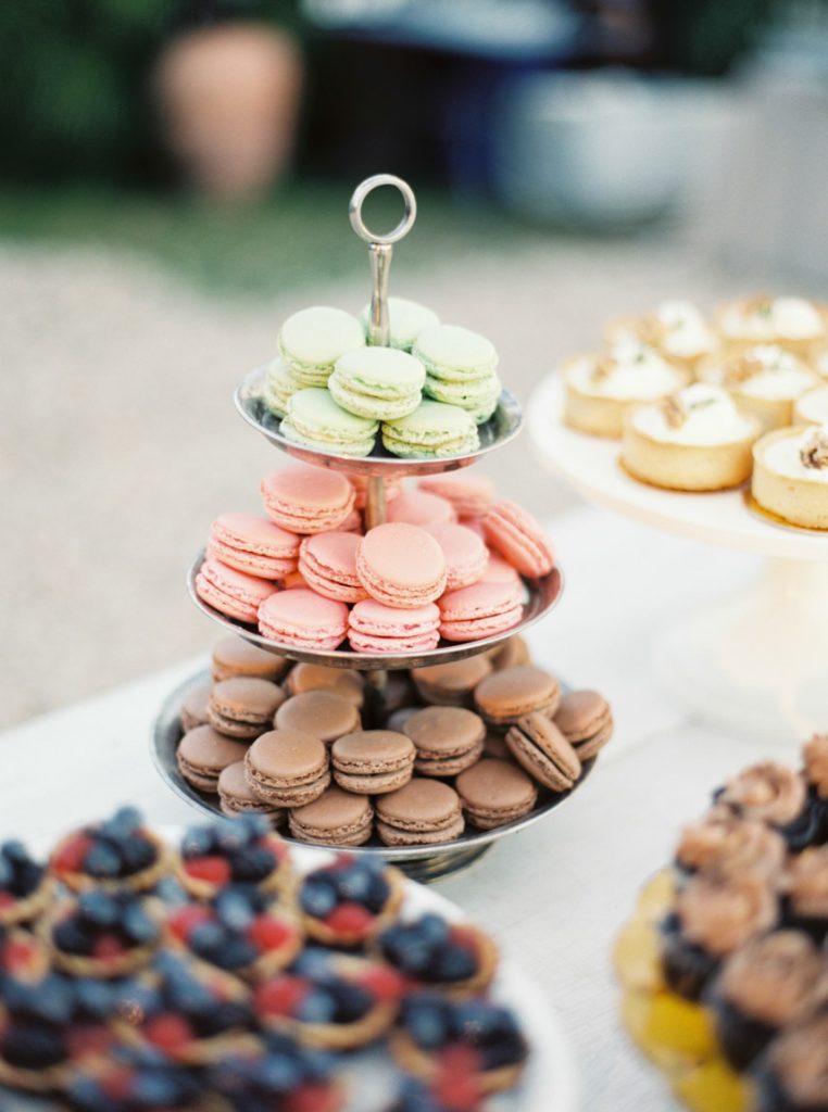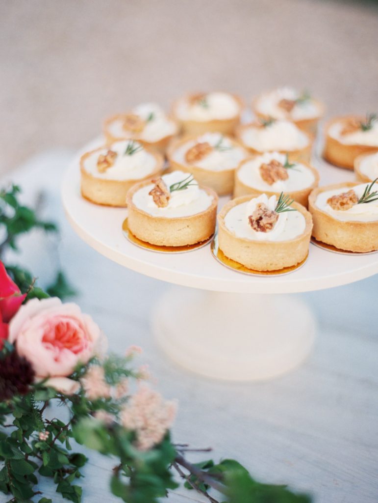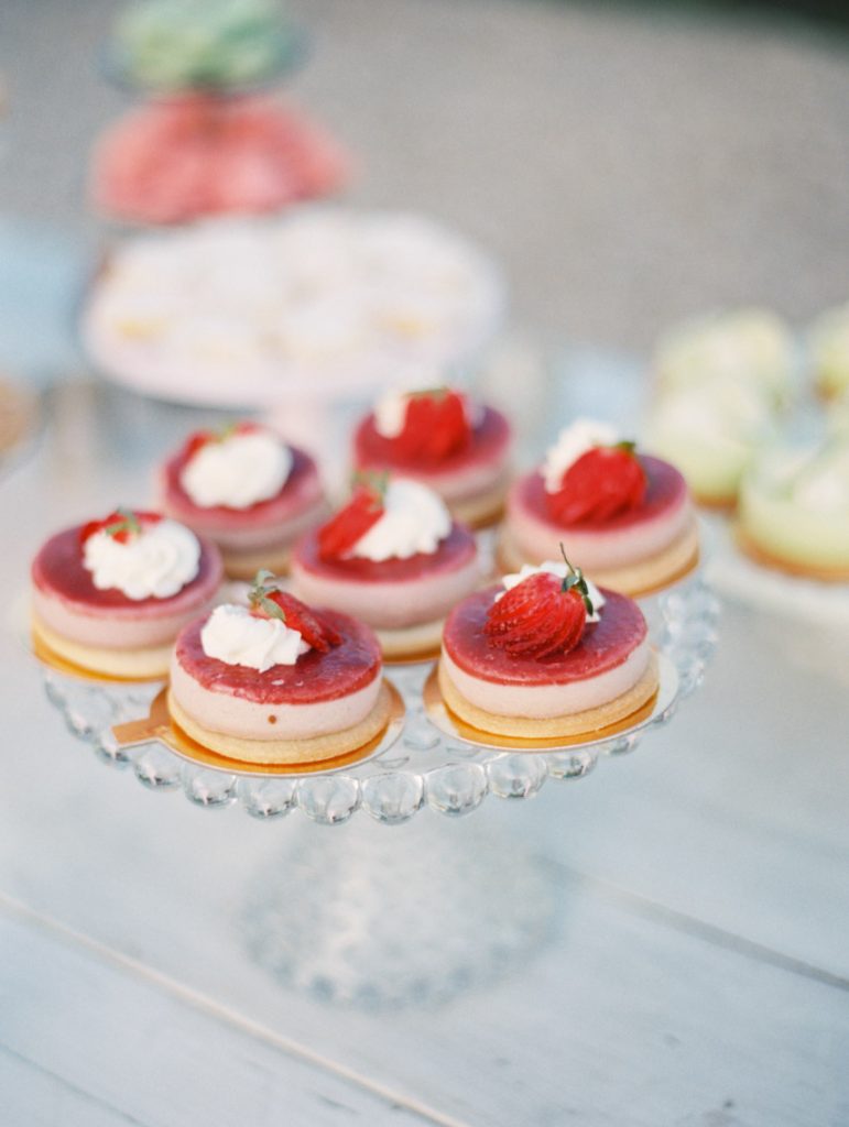 The reception was a secluded soiree with farm tables, delicious food, and soul music. The couple shared their first dance to “Lovin’ in my Baby’s Eyes” by Taj Majal. The blues music filled the open field while loved ones looked on at the joyous bride and groom. Dinner was served family style with a decadent menu with southern favorites from grilled Texas shrimp and grits to homemade brown butter cornbread. The dessert table was a huge hit with cheesecakes, brownies, lemon bars, and Whoopie pies. While they were eating, guests put on their pastel paper crowns – a fun English tradition the couple incorporated. The night was perfect for mingling and celebrating Paige and Chris. “It was the right size to where we got to talk to everybody and enjoy the people there,” Chris says.