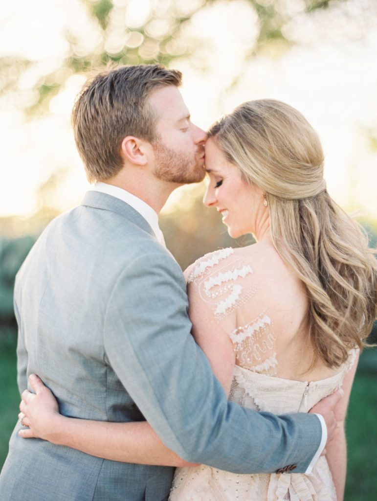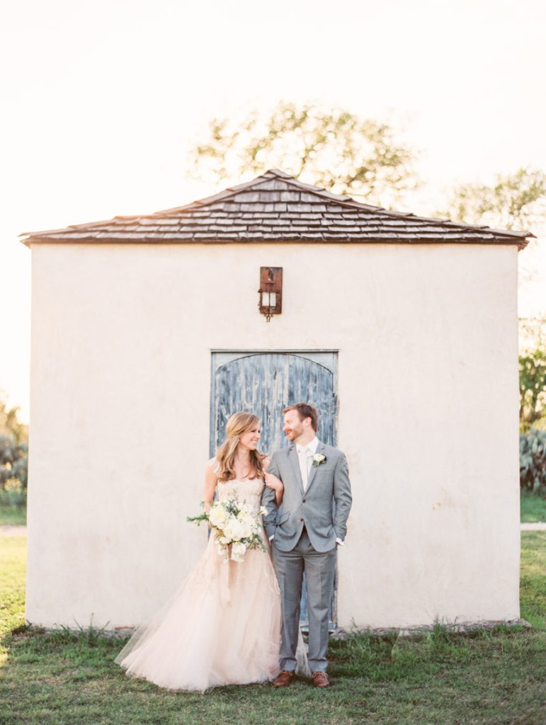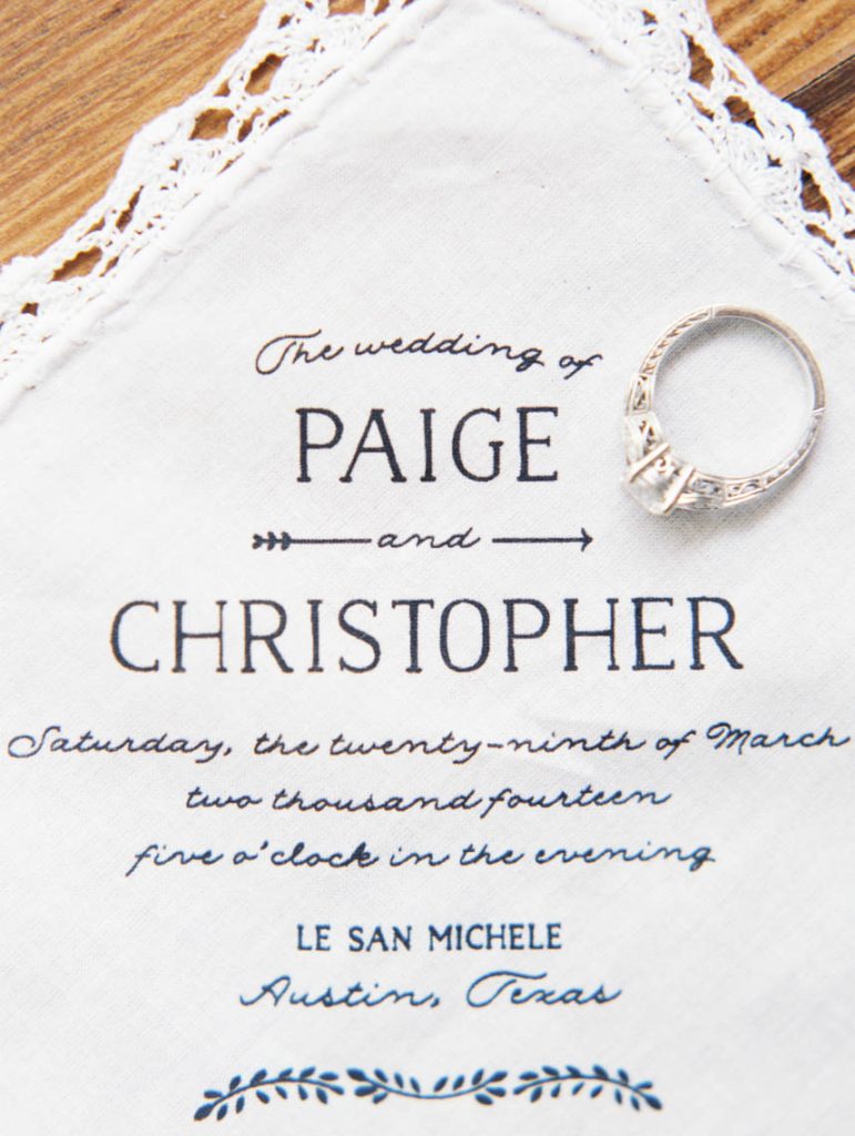 Paige and Chris are both from Shreveport, Louisiana, but never crossed paths until 2008 when they both lived in Austin. They met through a mutual friend at a quirky dive bar where beer and good conversation sparked the beginning of a friendship. They went on a first date several months later, and Chris introduced Paige to Austin. They fell in love over dinners, music festivals, and long sunny days at Lake Austin. In 2012, Chris was ready to ask Paige to marry him. They went to the hill country outside Austin where vineyards overtook the landscape. They were in Fredericksburg for a wine tasting. With a bottle of vino, they sat down under a cluster of trees, and the big moment happened. Chris told Paige how much he loved her and asked for her hand in marriage. Much to her surprise and excitement, Chris had been ring shopping weeks before. He knew Paige’s personality and picked a diamond and setting he knew she’d love. “I had no idea!” Paige remembers. Chris also arranged for their friends and family to surprise them. With an idyllic backdrop as their setting, everyone celebrated the newly engaged couple with anticipation of a beautiful Austin wedding ahead of them.