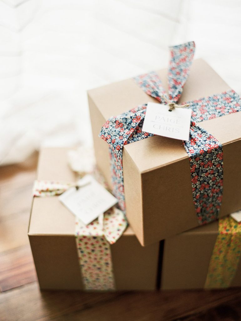 Finding the perfect wedding gown wasn’t quite as easy. Paige wasn’t sure what kind of dress she wanted, so she went on a shopping trip with her mom, friends, and sister. After trying on a countless number of gowns, the group slept on it for the night. The next day, they went back for Paige to try on her favorite, a gorgeous gown by Monique Lhuillier. “As soon as I said, ‘this was the dress,’ they all yelled. Turns out, it was their favorite all along as well,” Paige says. The bridal store also made beautiful detachable sleeves from part of the veil.