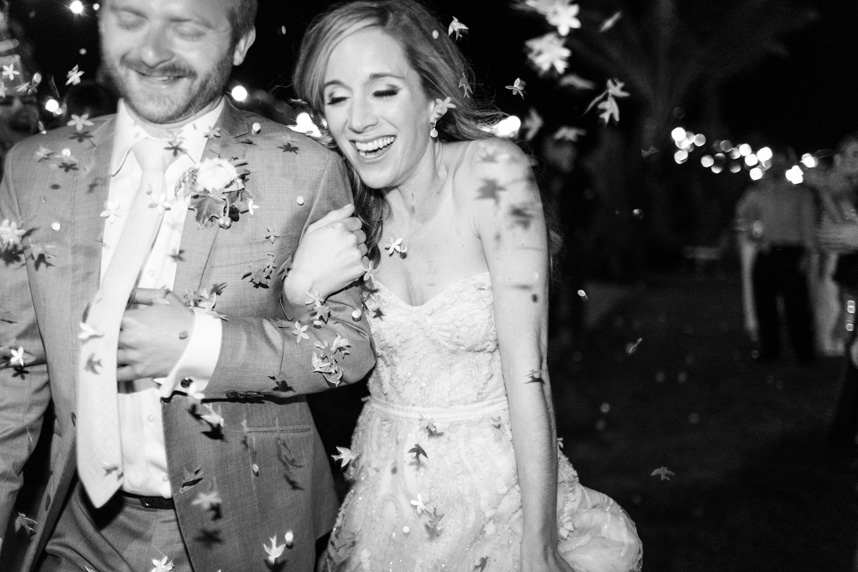 At the end of the night, each guest took home a CD that looked like a vinyl record filled with some of the great soul music from the reception. To conclude their evening in the countryside, Paige and Chris knew they had to go out with flair. They rented a flamboyant teal 1950s station wagon for their getaway car; “very Buddy Holly,” Chris says. As everyone wished them well, the couple ran through a flurry of confetti to get in the vintage car. Even though it was dark, the serene setting was still gorgeous, and the air was just chilly enough that you wanted to hold your loved one close. Something special happened that night. Two people started a new chapter as one in a setting so peaceful it seemed right out of a storybook, a countryside romance for a couple meant for a beautiful life together.
