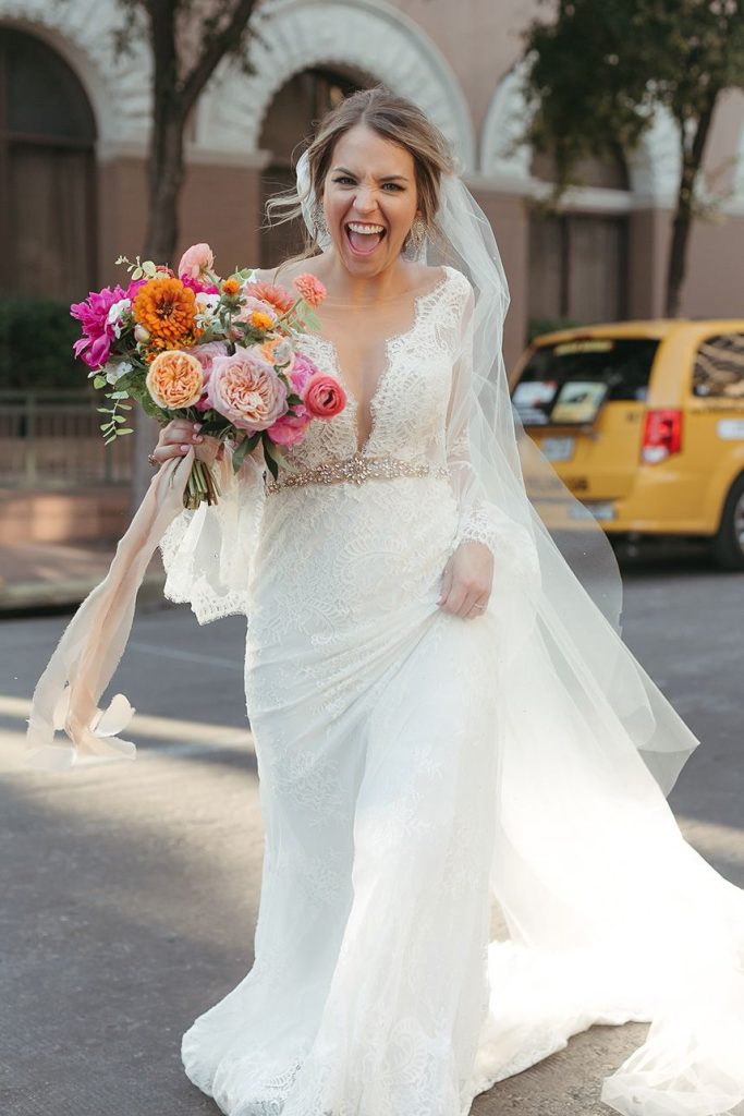 This whimsical white wedding looked like it was floating in the clouds, and we’re loving the pops of bright, summery colors in their reception. Kenna Johnson and David Ten Have’s ceremony truly looked so dreamy with all the white details. Planned to complete perfection by Westcott Weddings and adorned in oh-so-lovely floral from Remi + Gold, there’s truly not a thing we’d change about their big day. The Driskill provided the perfect amount of ballroom elegance to their big day, and the lounge rentals from Loot Rentals and chair and linens from Premiere Events, provided for a modern spin on your traditional ballroom wedding. Kenna and her gals looked stunning with hair and makeup by Gloss Beauty Boutique, and we’re totally obsessing over the pop of color the bridesmaids’ gown brought. There are so many little moments we love below, like the true joy on Kenna’s face post-wedding and the most romantic first kiss ever! Scroll through all the pretty things below!