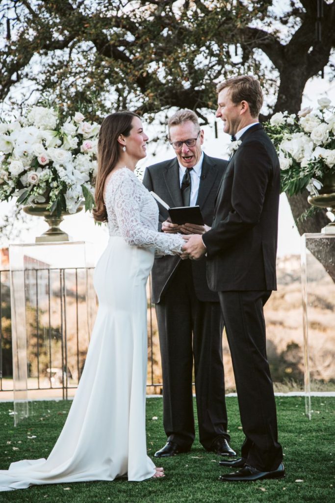 If you are looking for a little bit of glam fit for a Texas wedding, look no further! Katherine and Connor’s wedding was a showstopper, dripping in white orchids at every turn! The small hints of blush pink added a perfect pop of color to the natural and bright decor from Premiere Events. Not only was everything absolutely picture perfect, but this couple has a very sweet and heart-warming story.