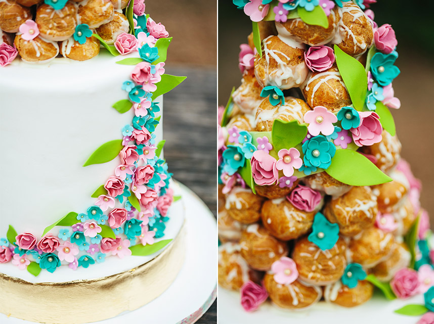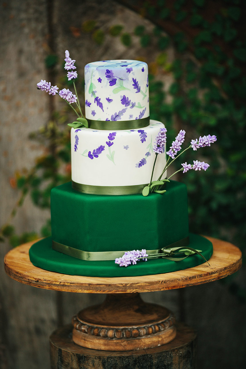 The gorgeous hand painted lavender of this cake from 2Tarts Bakery really pops against the layer of lush emerald green.
