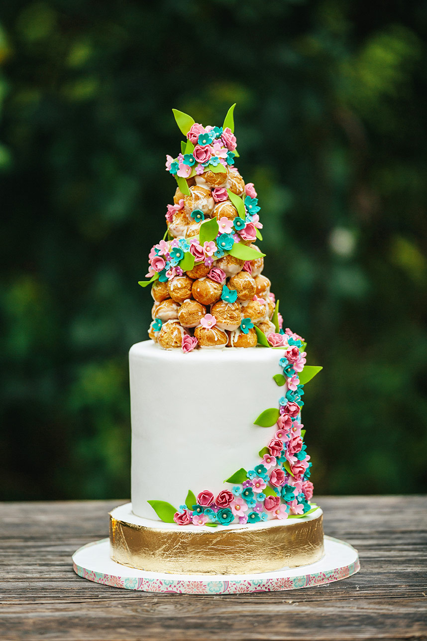 Inspired by a summer garden, this three tiered beauty from Simply Delicious Custom Cakes is playful and modern.