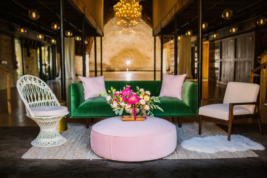 Hidden on the outskirts of Austin, the Grand Lady of Austin is a spectacular mansion set on 20 acres of towering oak trees. The venue was originally built in 1881 as a wedding present for the Waltons, and it has been cared for by various families during different phases of her life. The grand and unique backdrop serves as modern and eclectic vibe. The architects wanted to preserve some of the historical splendor, so you will find beautiful stained-glass windows, dark wood floors and delicate window designs throughout the space.