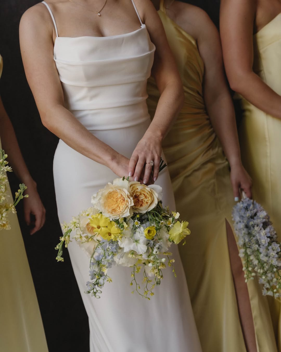 A fresh take on bridesmaid florals: mono-floral bouquets! Each bridesmaid carried a single type of flower from the bride’s bouquet, creating a cohesive and modern aesthetic that’s both simple and stunning.