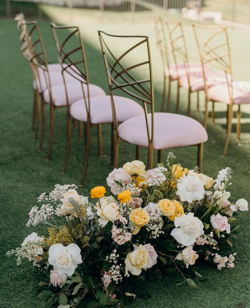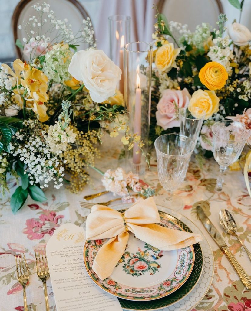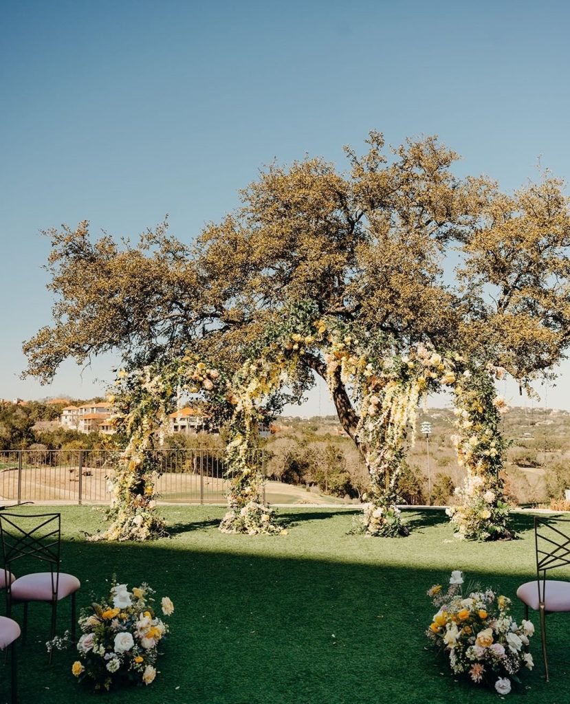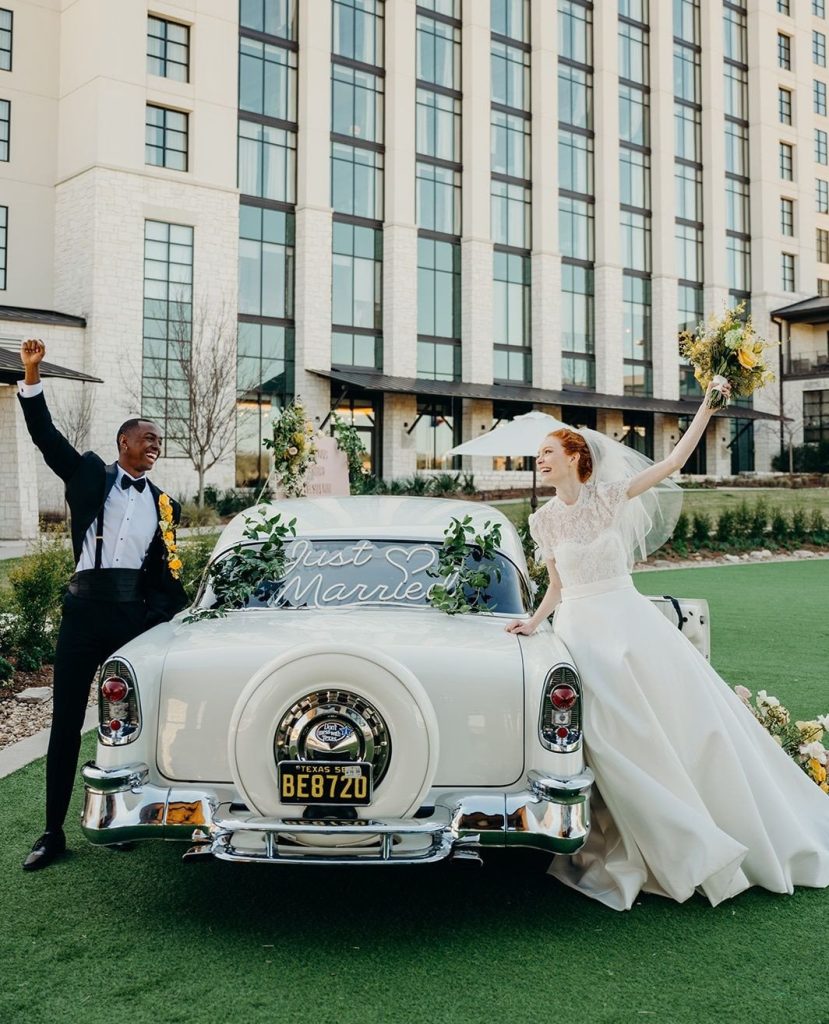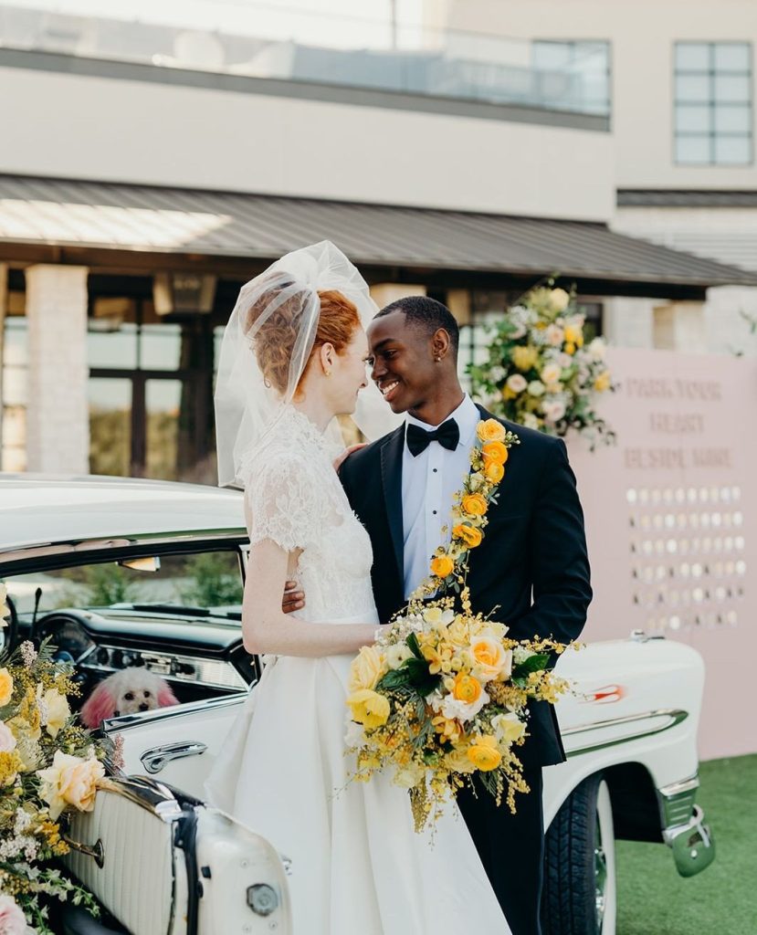 Omni Barton Creek was transformed into a Southern-inspired wedding dream filled with sunny yellow blooms, floral linens, pink accents, and the perfect vintage getaway car. 🌼🎀