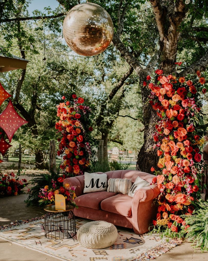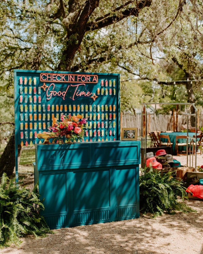 Their wedding at Cypress Falls Event Center was a true celebration of color, creativity, and love. With bold tropical florals by Floral Designs by Randi, flawless glam from Think Brink Beauty, and a hotel-style “check-in” seating chart that wowed guests, every detail reflected the couple’s fun-loving personalities and vibrant style.