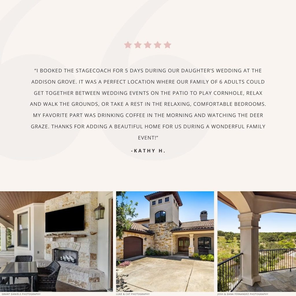 ATXStagecoach is a 4-bedroom, 4-bathroom 10-acre Hill Country Retreat that offers sweeping views, modern comforts, a fire pit, cold plunge, grill and sauna. ATX Stagecoach offers cozy wedding accommodations near Driftwood & Dripping Springs! Nearby venues include The Arlo, Villa at the Vineyards, The Addison Grove, Creekside, Stone House Villa, Canyonwood Ridge, Pecan Springs Ranch, and the Terrace Club. Book now with code WEDSOCIETY for 5% off!